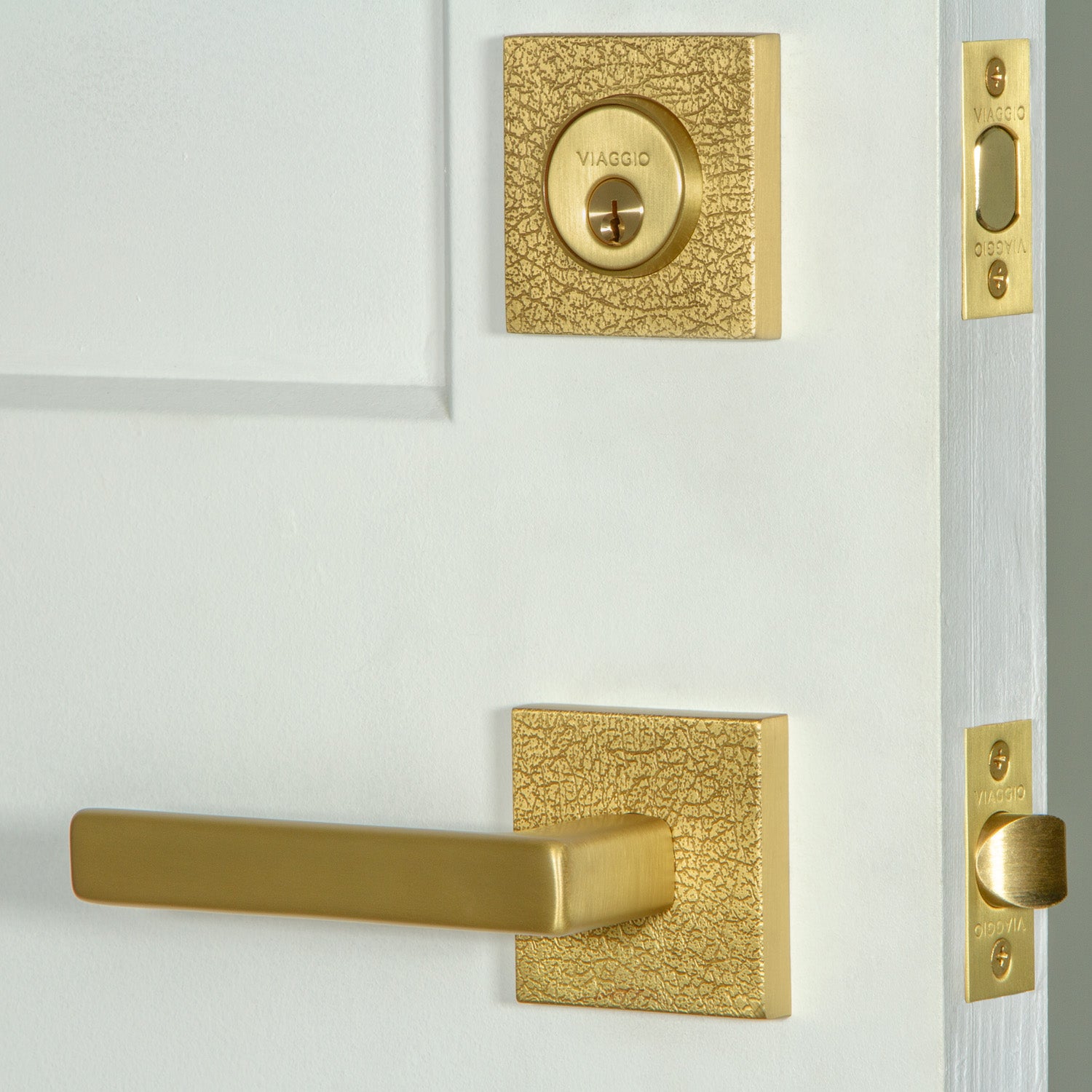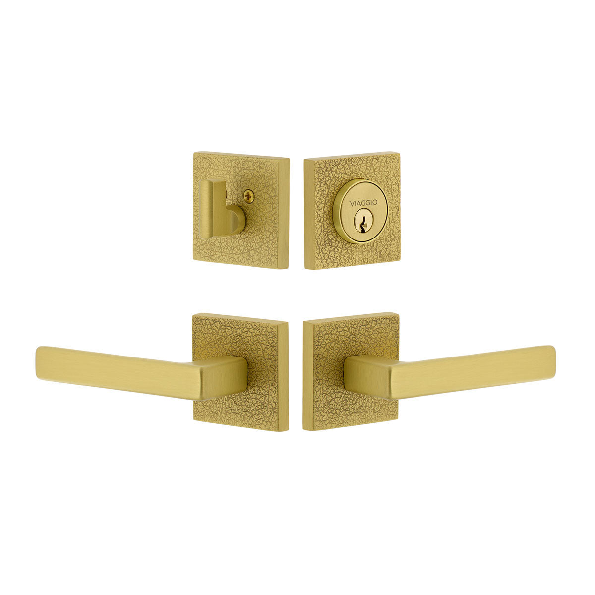 Quadrato Hammered Rosette Entry Set with Lusso Lever in Satin Brass