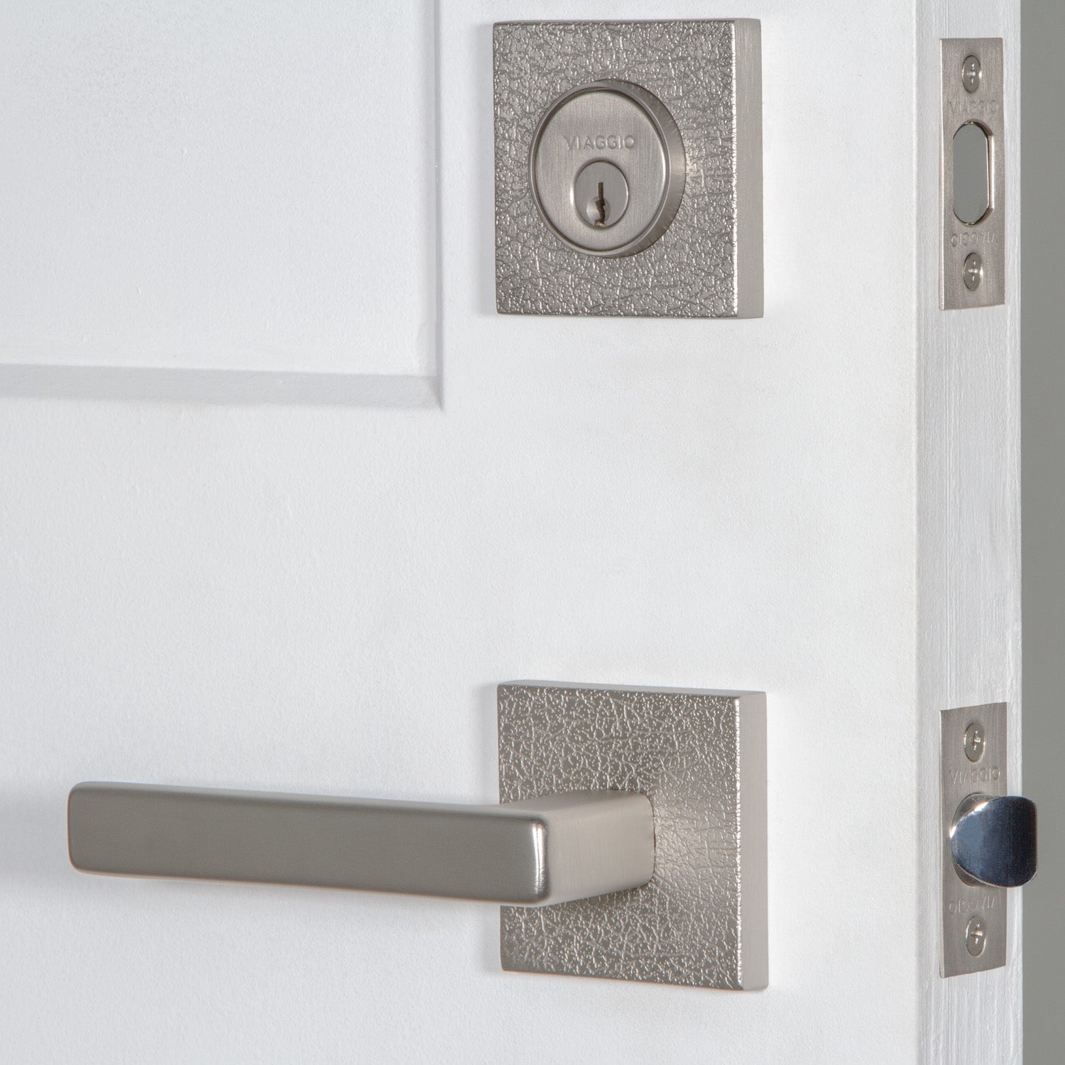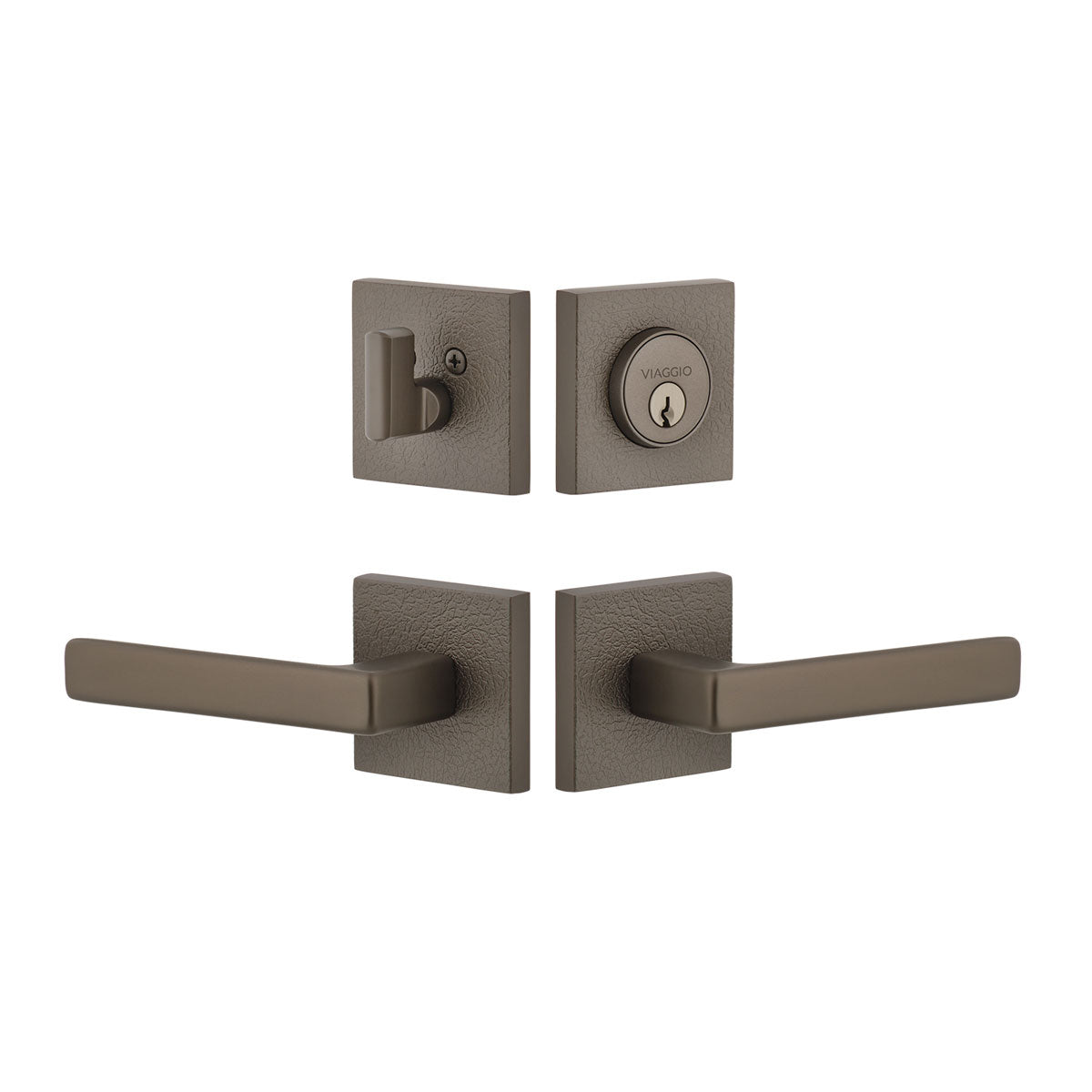 Quadrato Hammered Rosette Entry Set with Lusso Lever in Titanium Gray