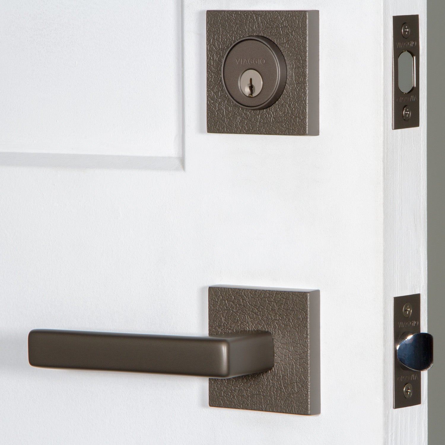 Quadrato Leather Rosette Entry Set with Lusso Lever in Titanium Gray
