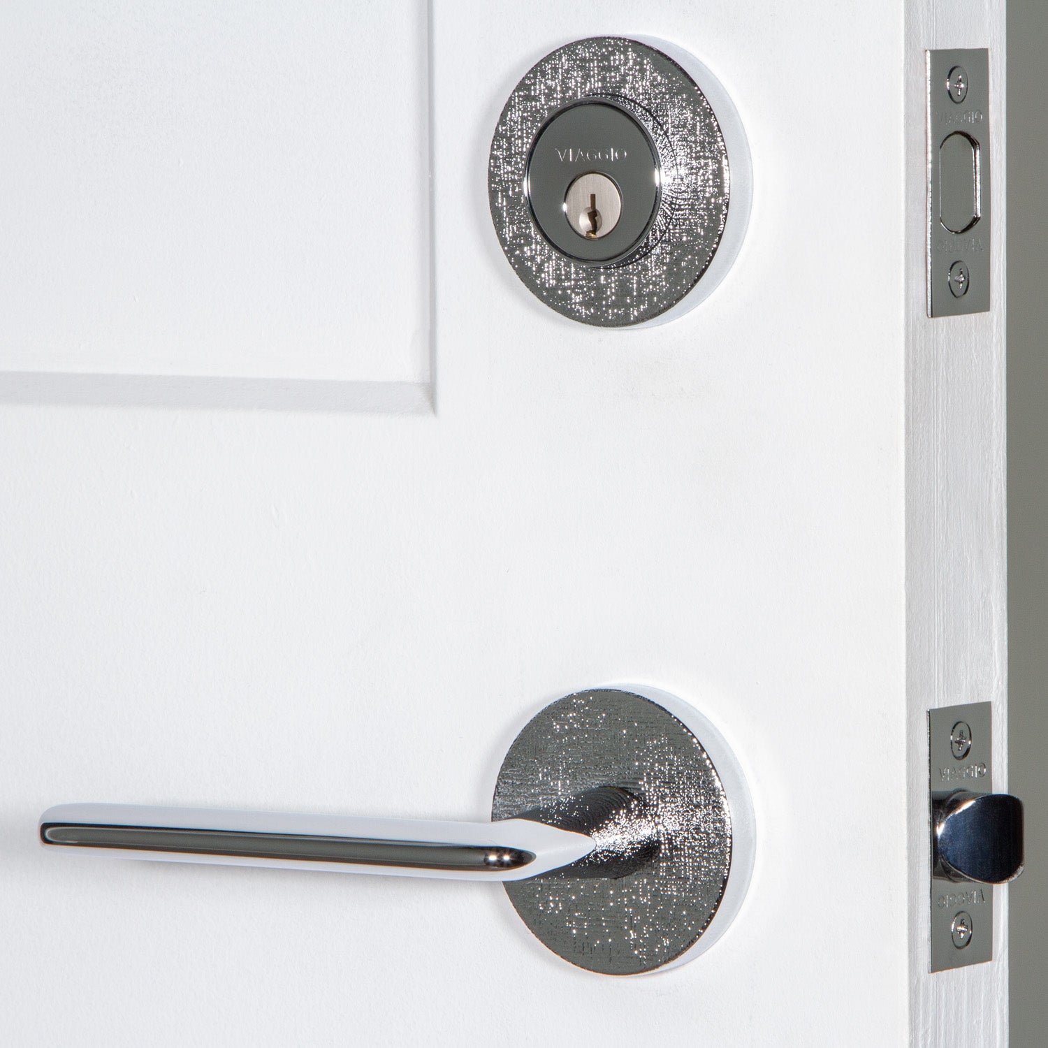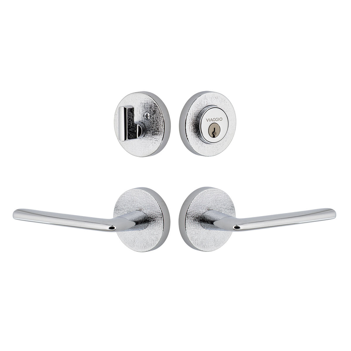 Circolo Linen Rosette Entry Set with Brezza Lever in Bright Chrome