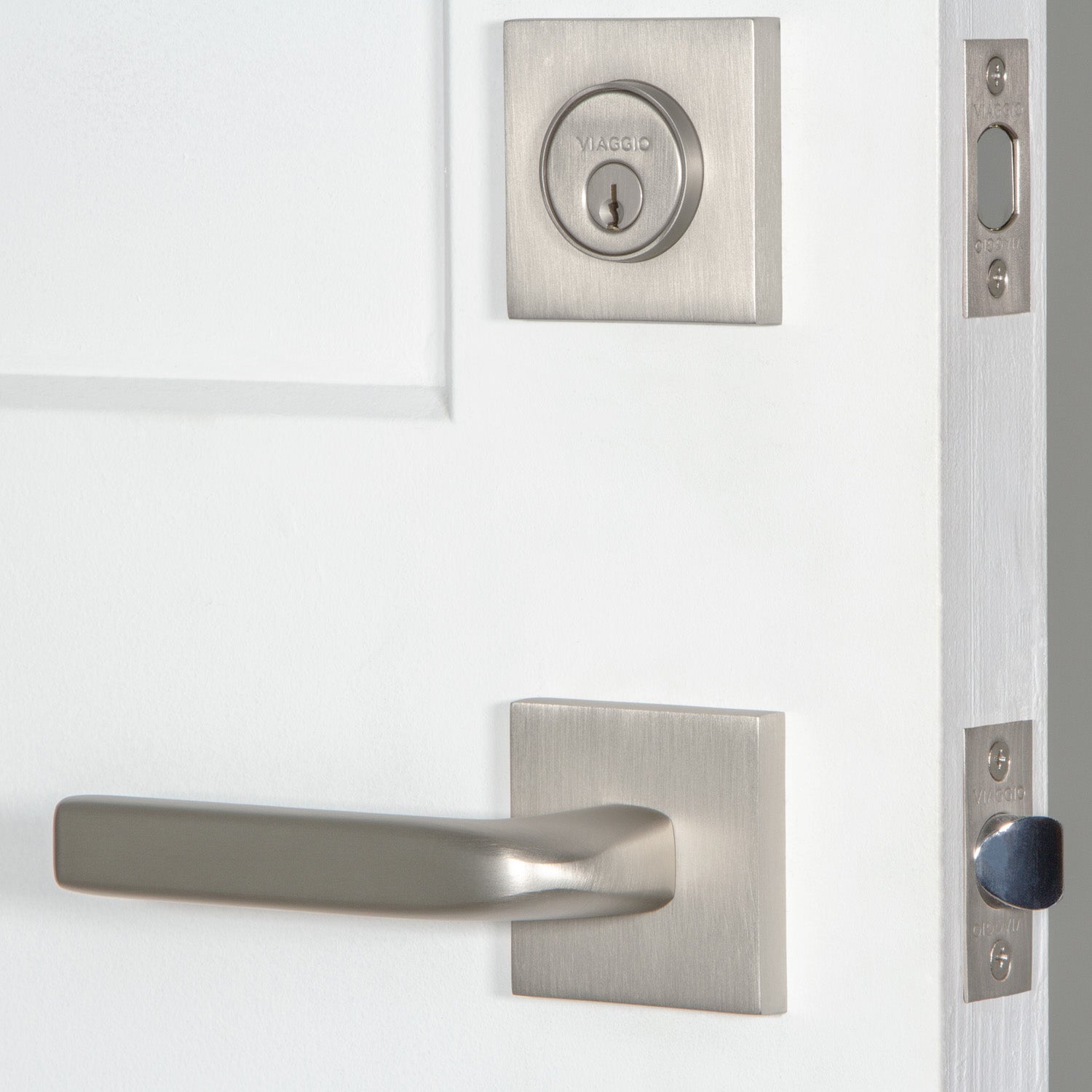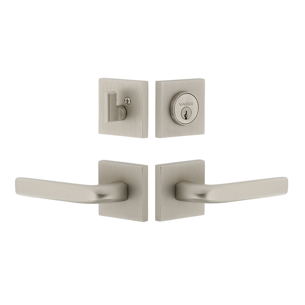 Quadrato Rosette Entry Set with Bella Lever in Satin Nickel