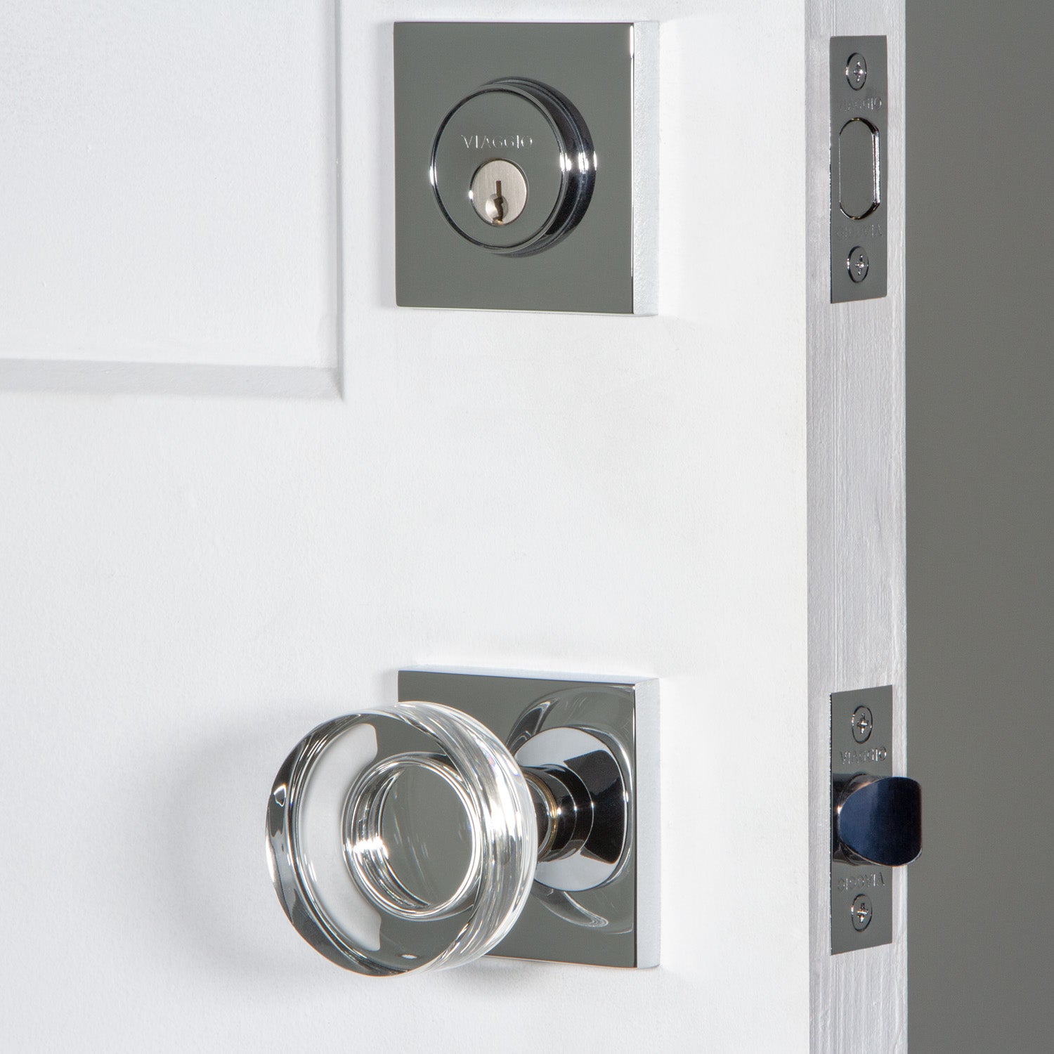 Quadrato Rosette Entry Set with Circolo Crystal Knob in Bright Chrome