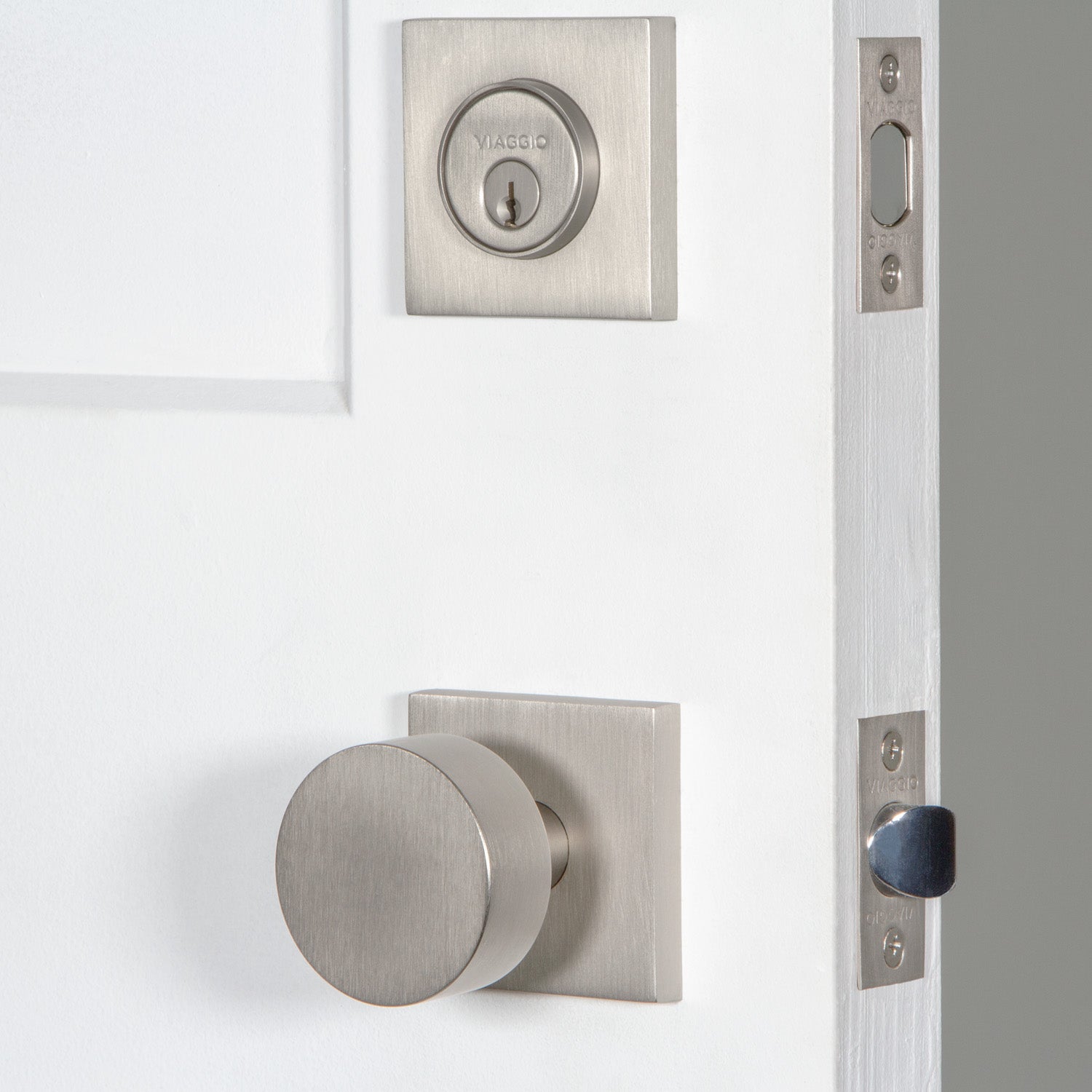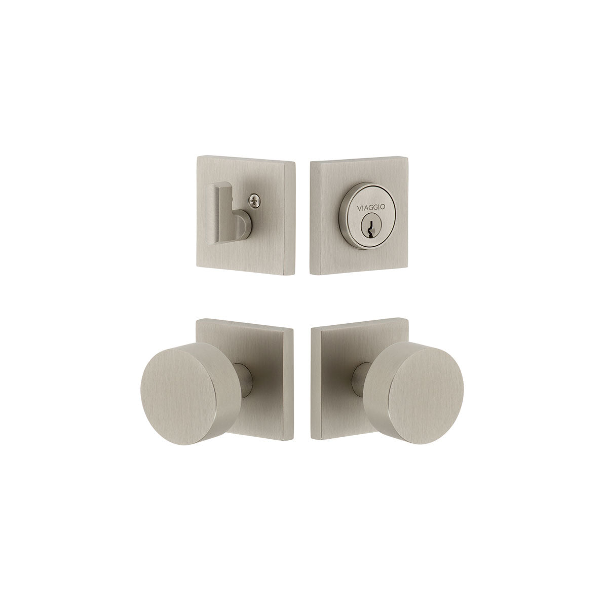 Quadrato Rosette Entry Set with Circolo Knob in Satin Nickel