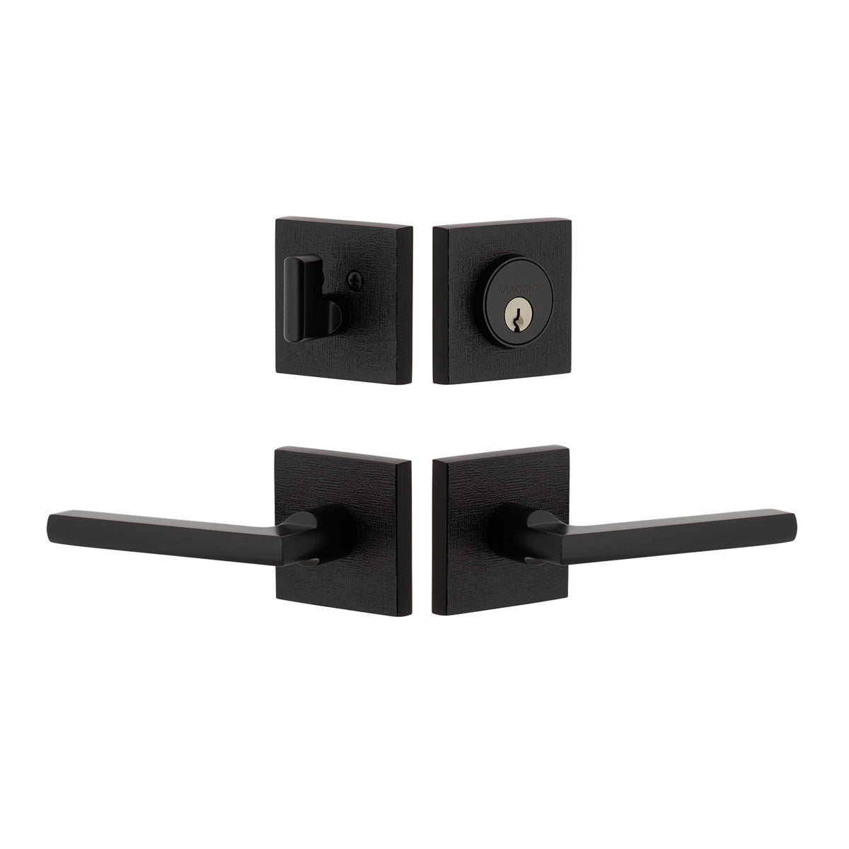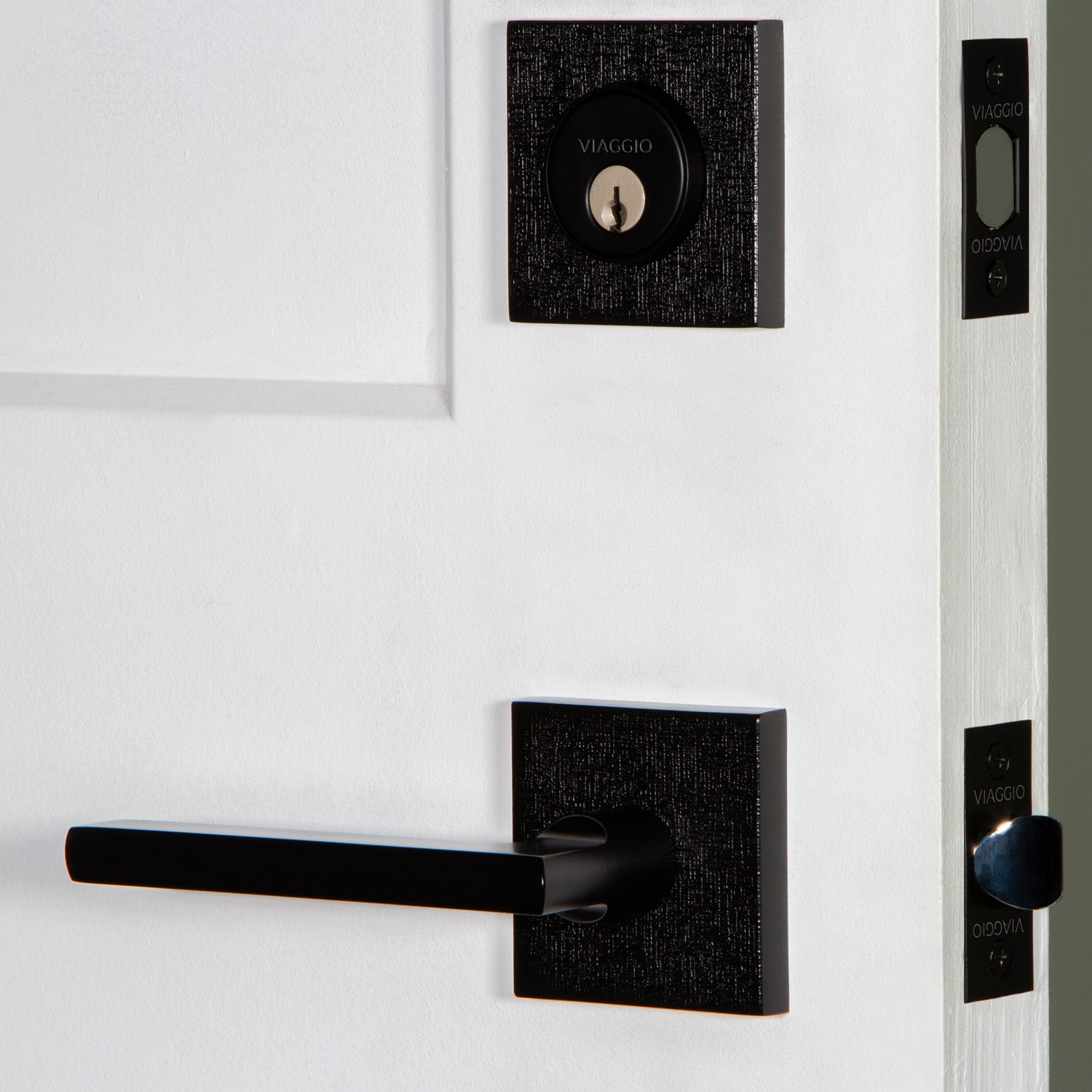 Quadrato Linen Rosette Entry Set with Milano Lever in Satin Black