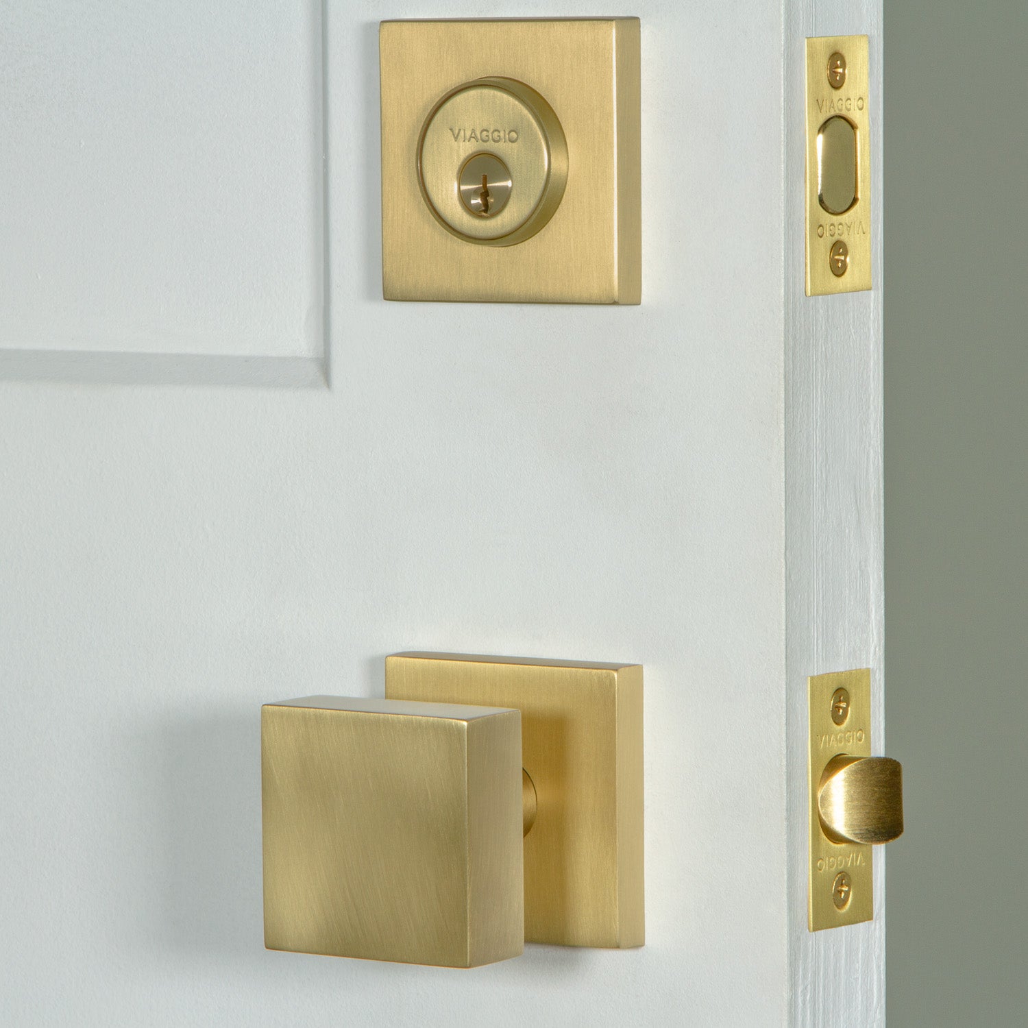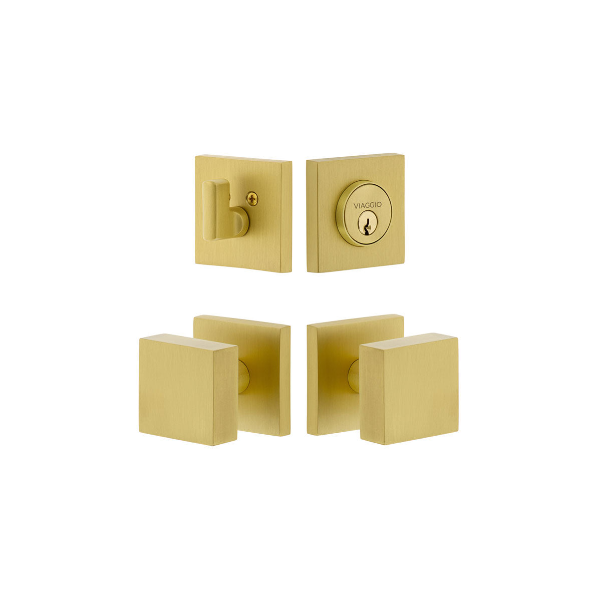 Quadrato Rosette Entry Set with Quadrato Knob in Satin Brass