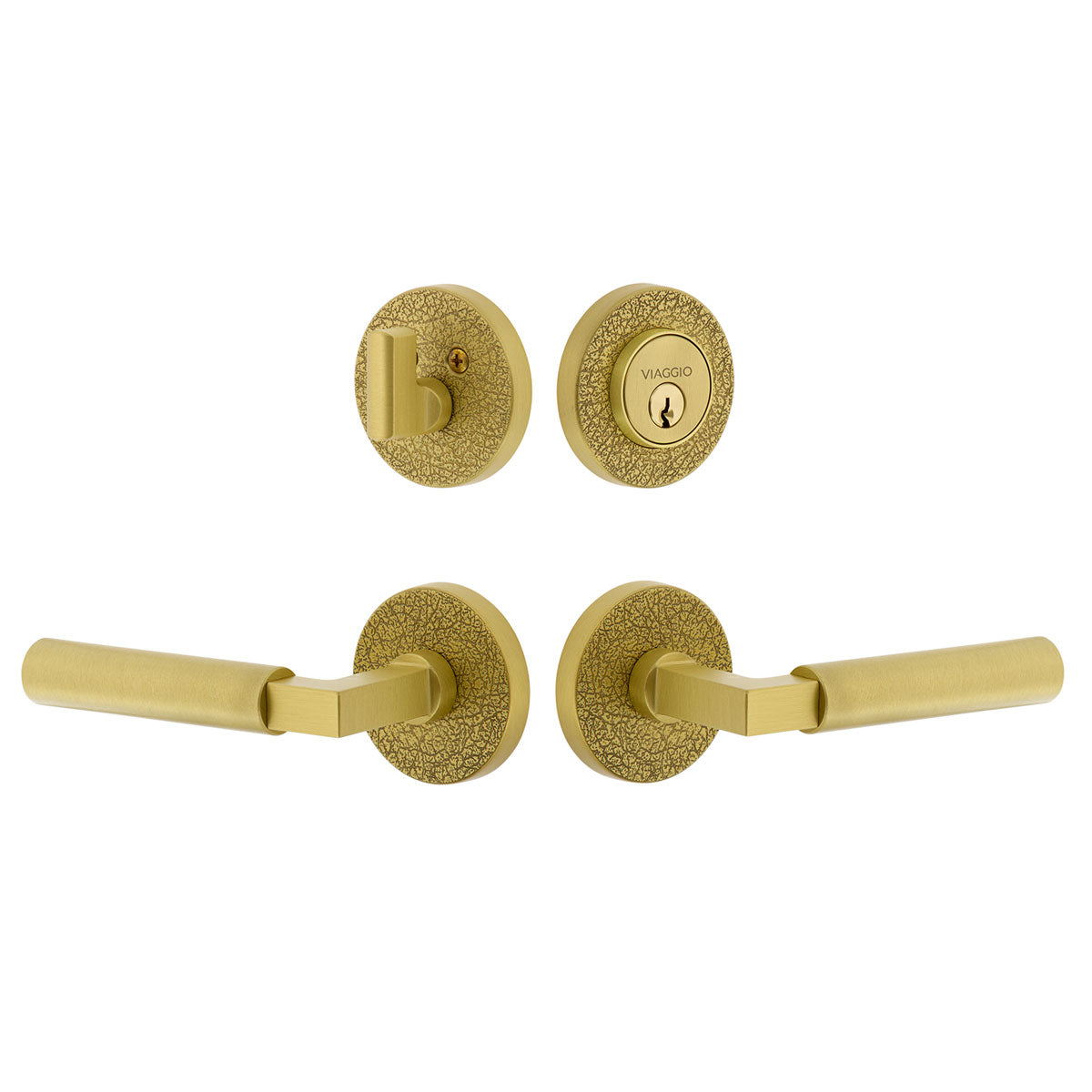Circolo Linen Rosette Entry Set with Contempo Lever in Satin Brass
