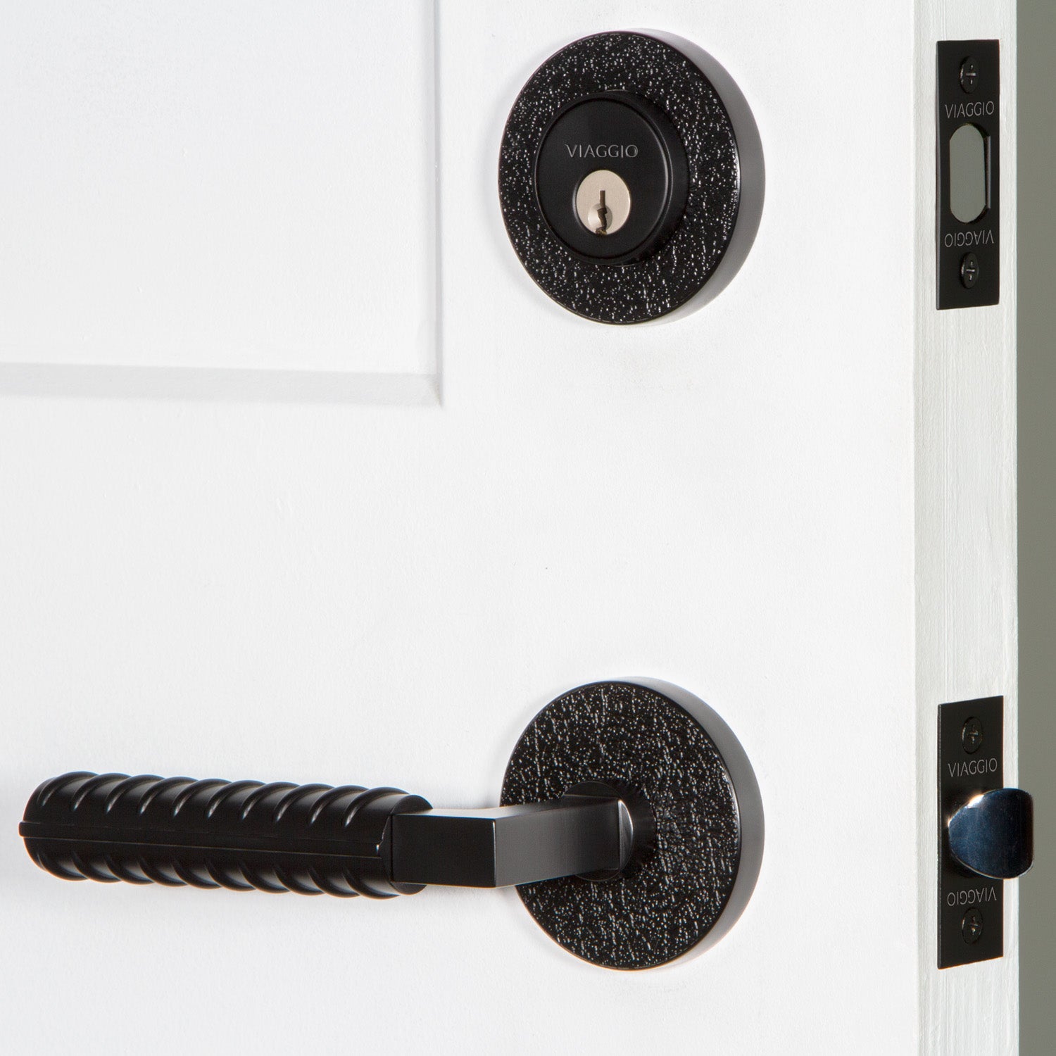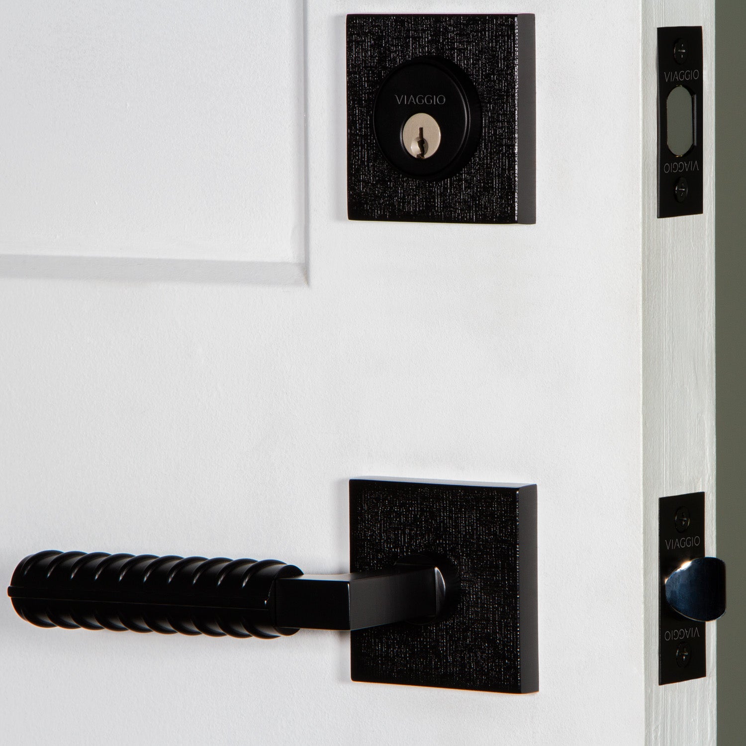 Quadrato Linen Rosette Entry Set with Contempo Rebar Lever in Satin Black