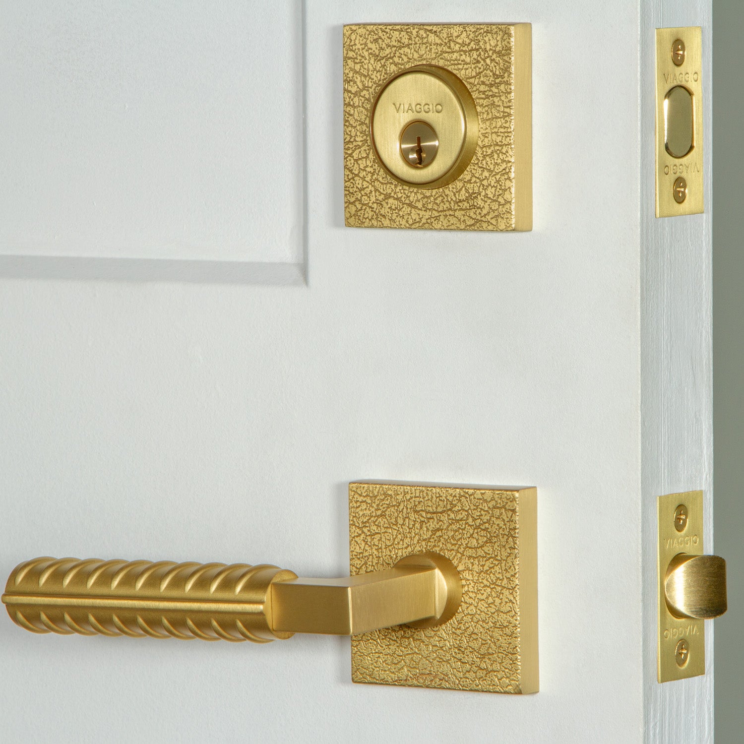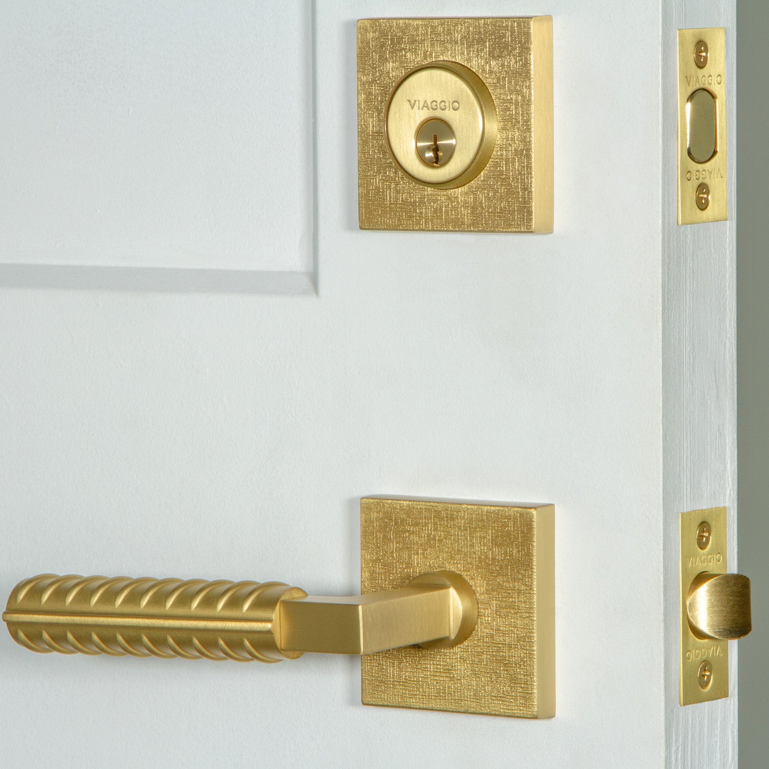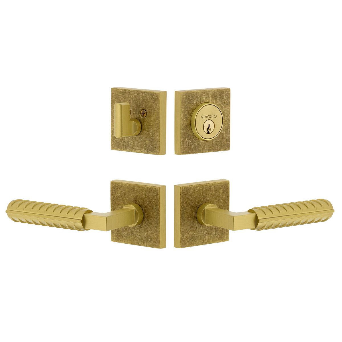 Quadrato Linen Rosette Entry Set with Contempo Rebar Lever in Satin Brass
