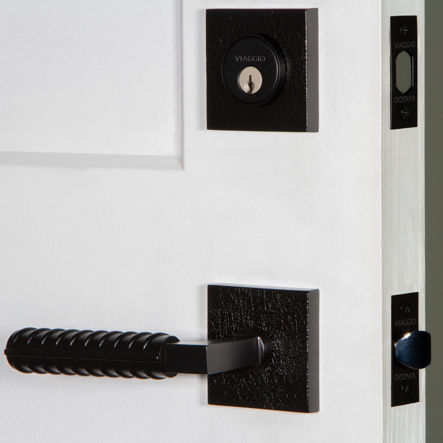 Quadrato Leather Rosette Entry Set with Contempo Rebar Lever in Satin Black