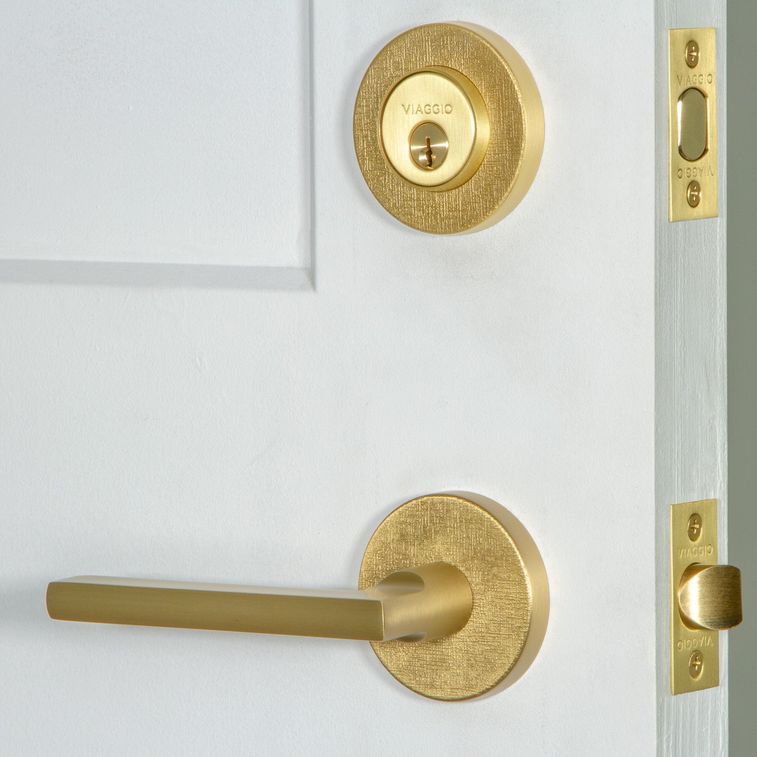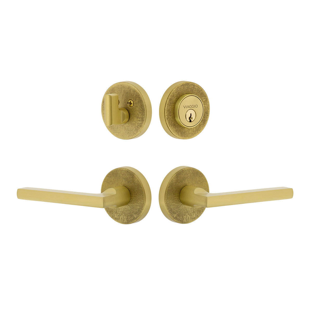 Circolo Linen Rosette Entry Set with Milano Lever in Satin Brass