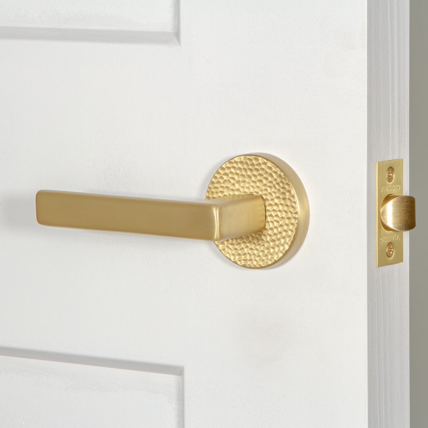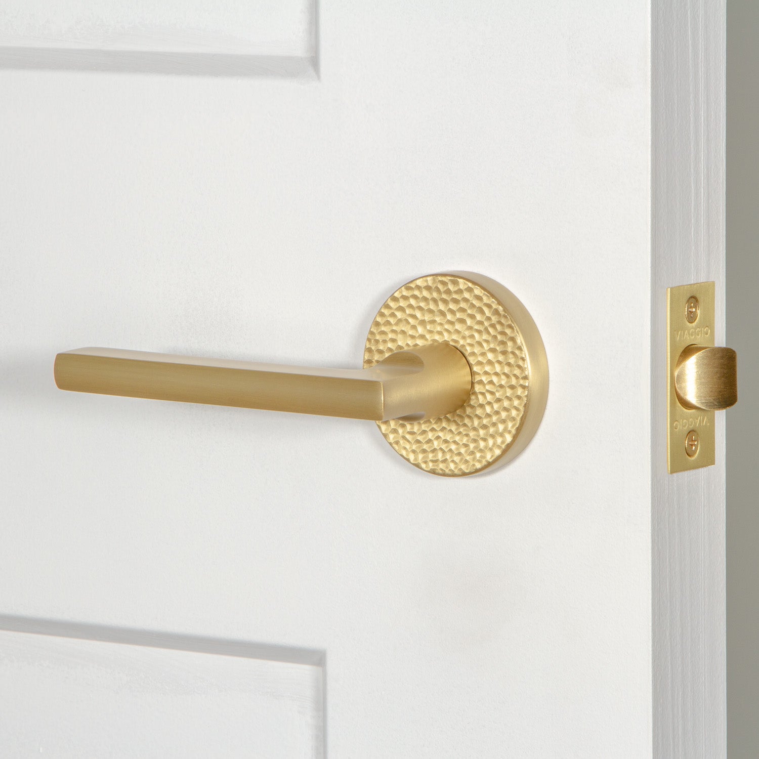 Circolo Hammered Rosette with Moderno Lever in Satin Brass