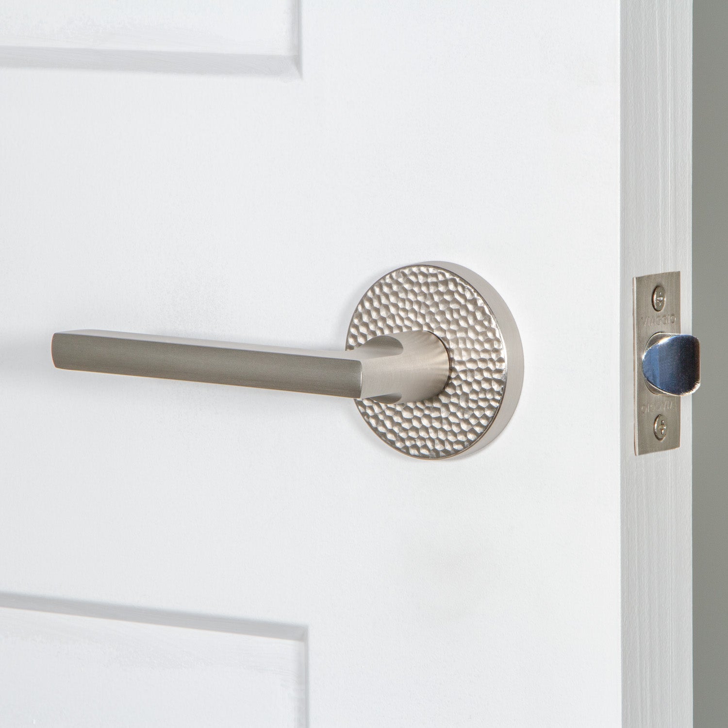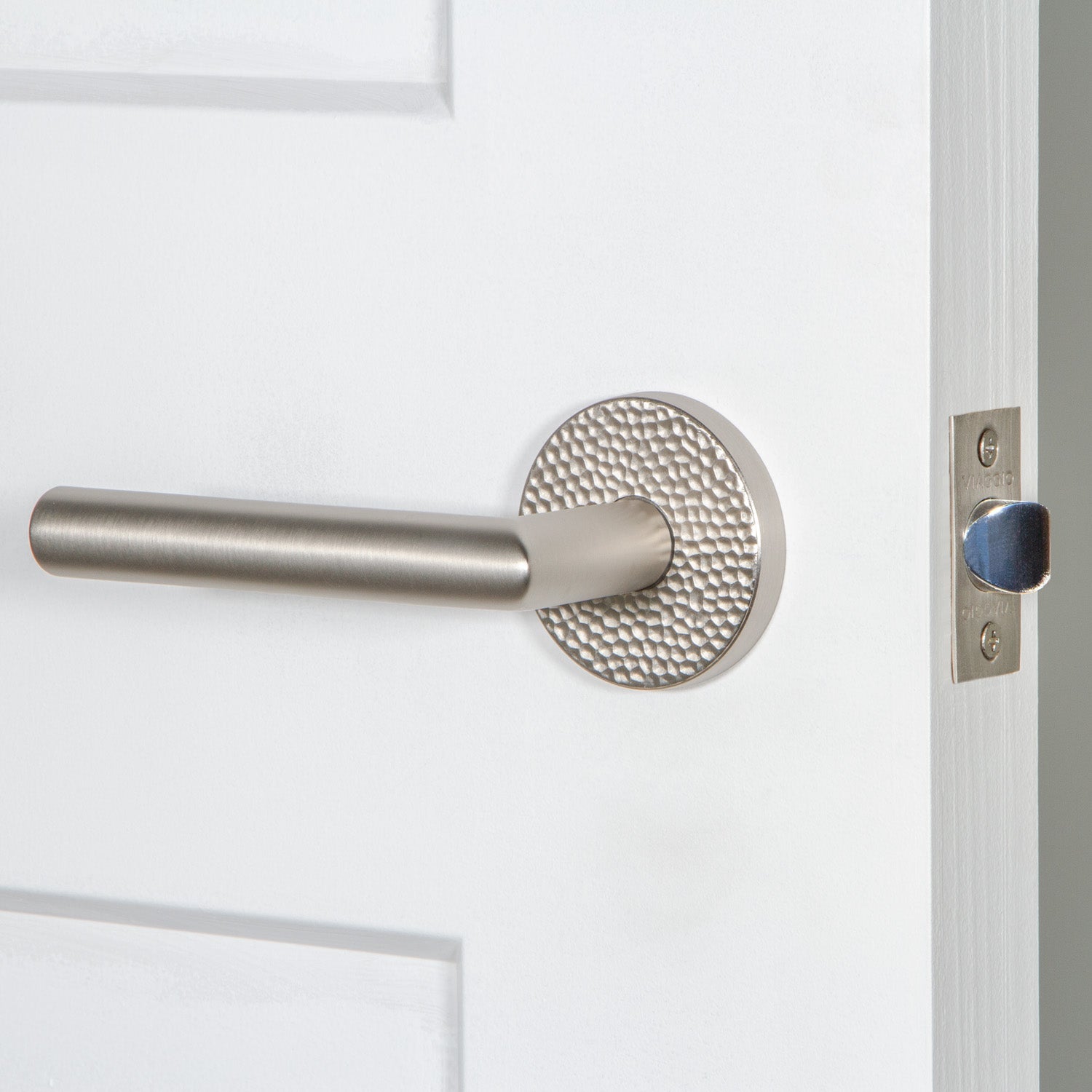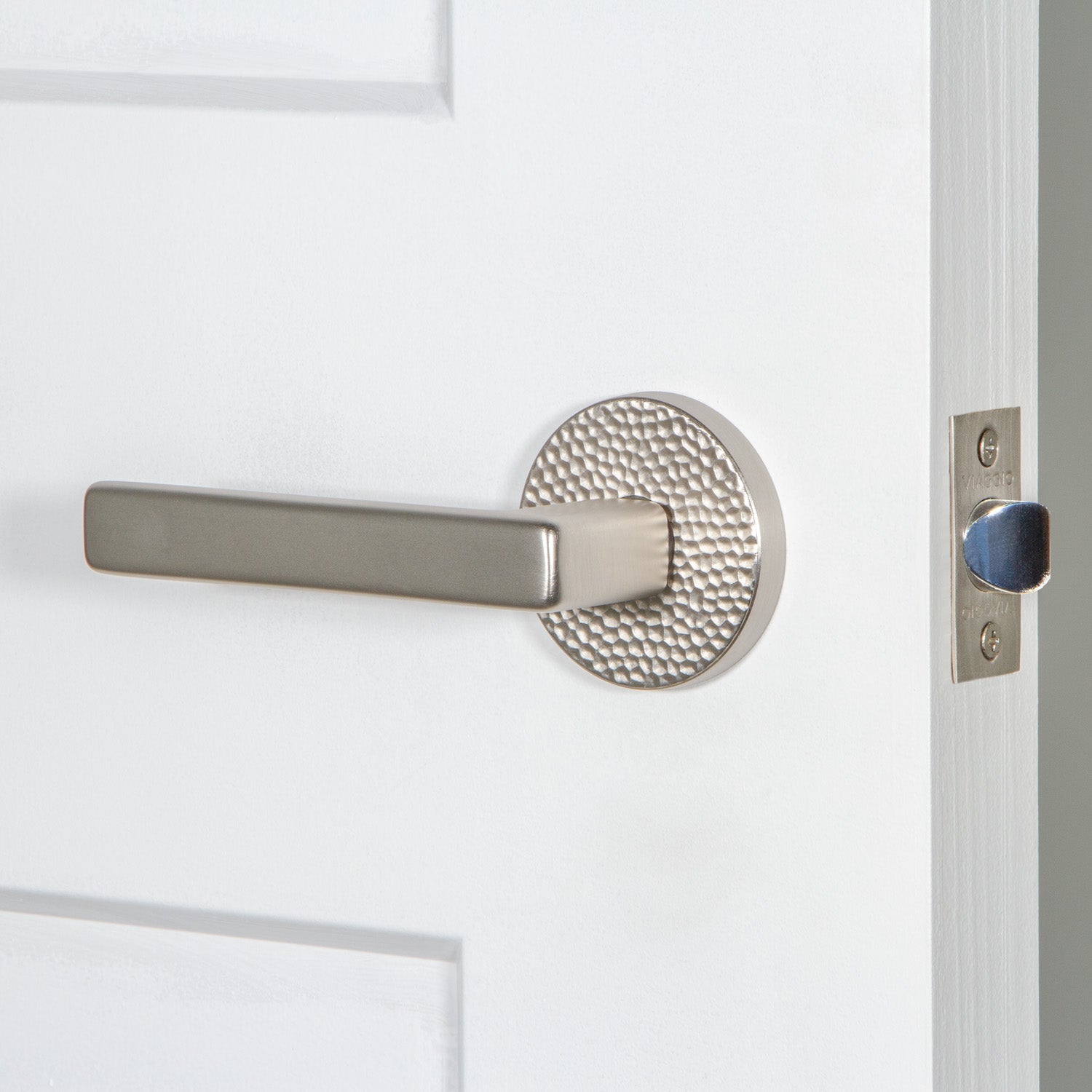 Circolo Hammered Rosette with Milano Lever in Satin Nickel