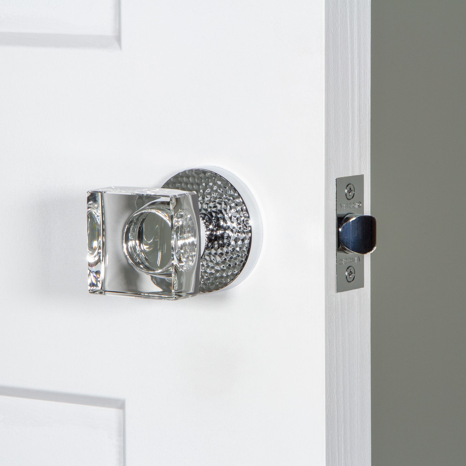 Circolo Hammered Rosette with Quadrato Crystal Knob in Bright Chrome