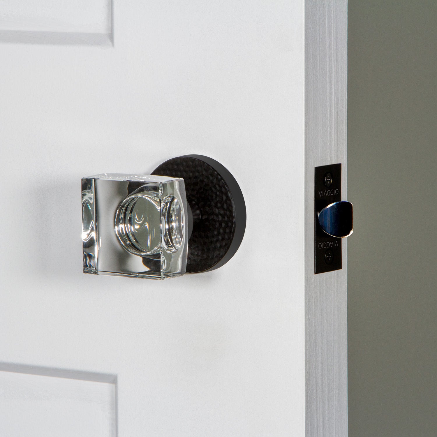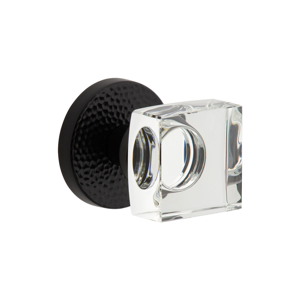 Circolo Hammered Rosette with Quadrato Crystal Knob in Satin Black