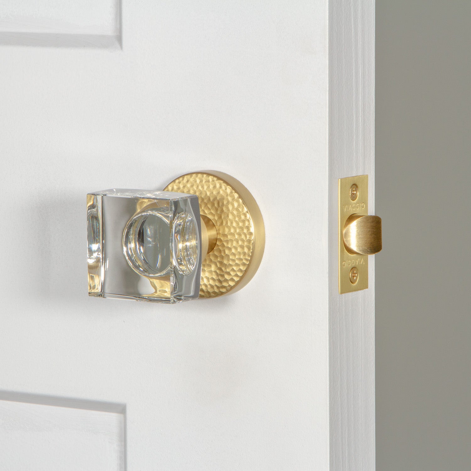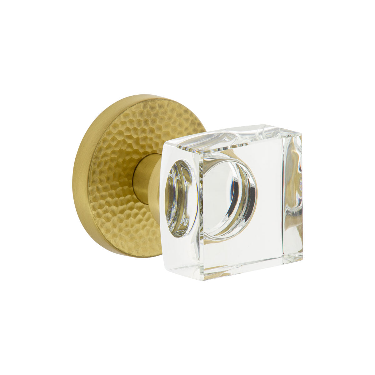 Circolo Hammered Rosette with Quadrato Crystal Knob in Satin Brass