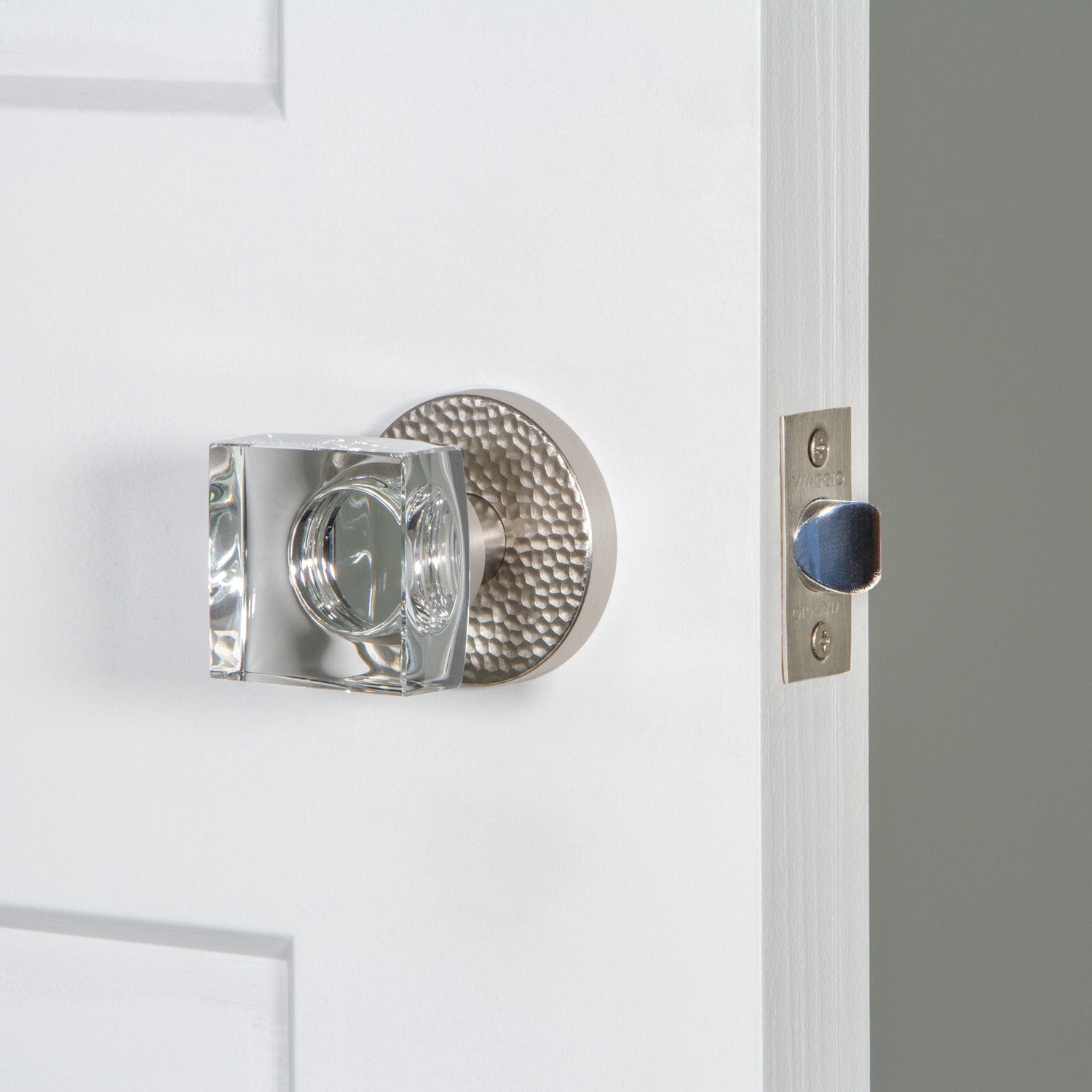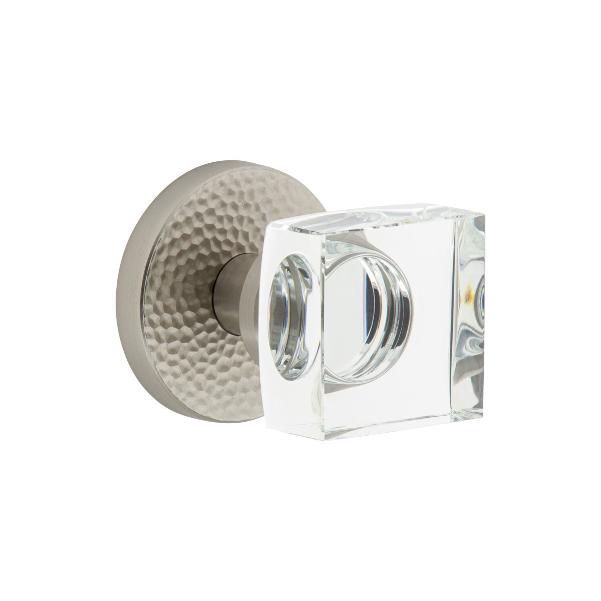 Circolo Hammered Rosette with Quadrato Crystal Knob in Satin Nickel