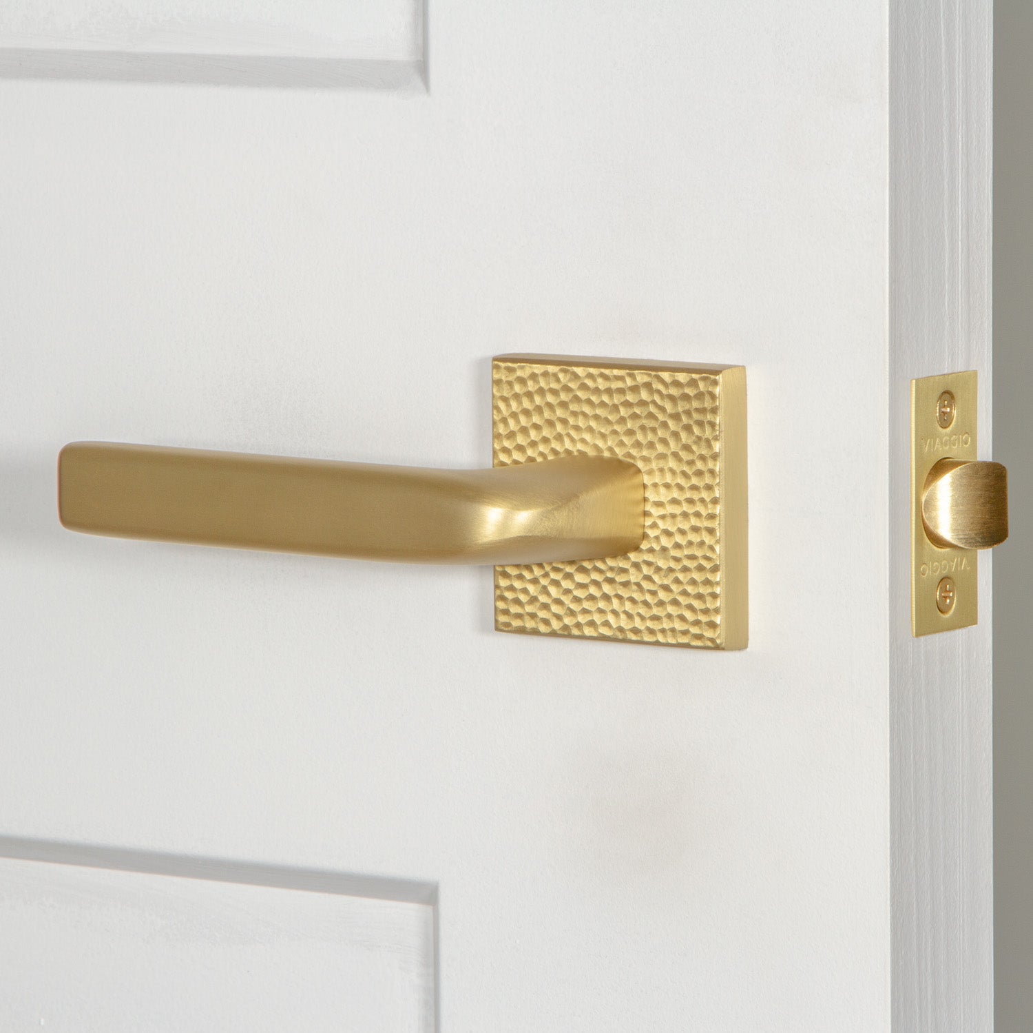 Quadrato Hammered Rosette with Bella Lever in Satin Brass