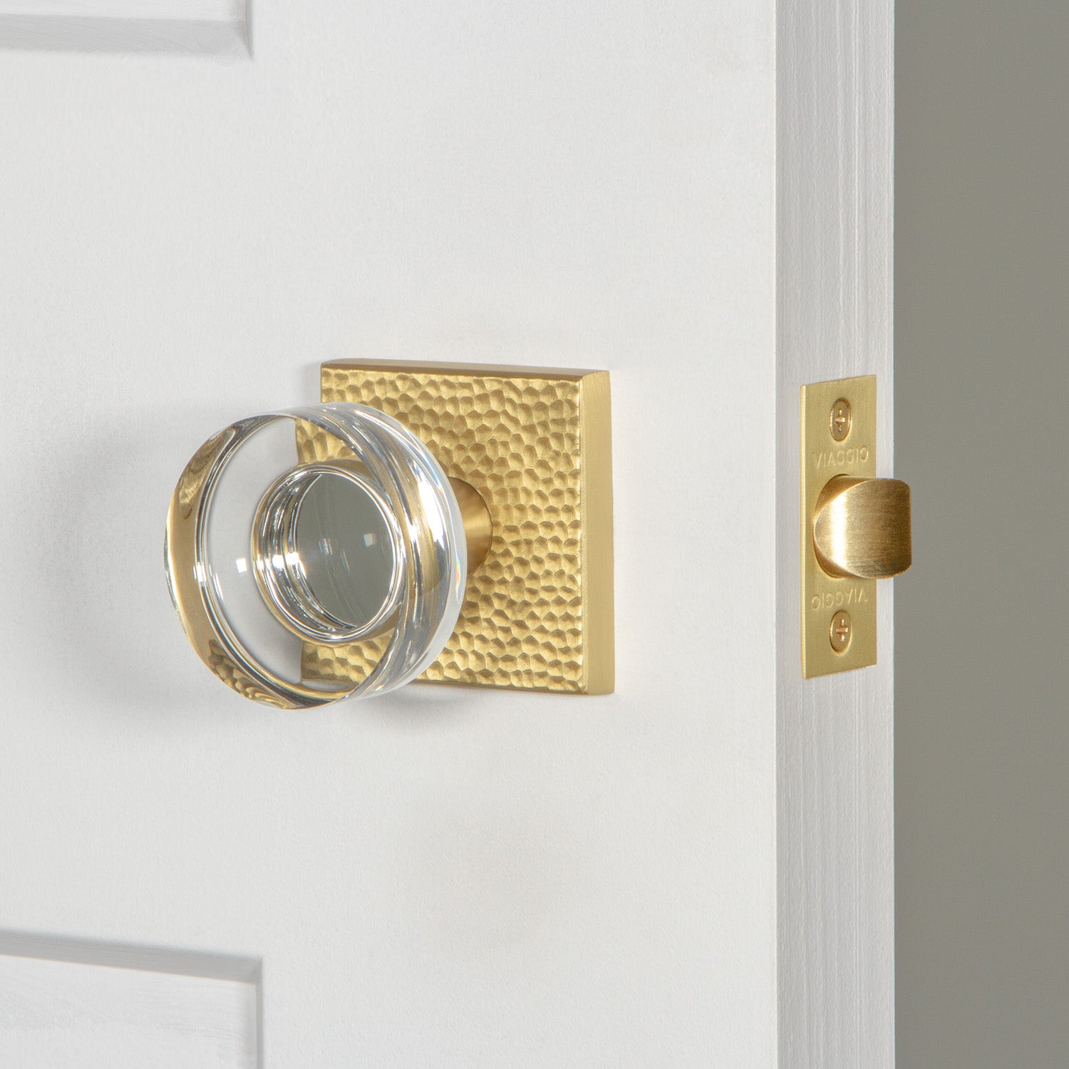 Quadrato Hammered Rosette with Circolo Crystal Knob in Satin Brass