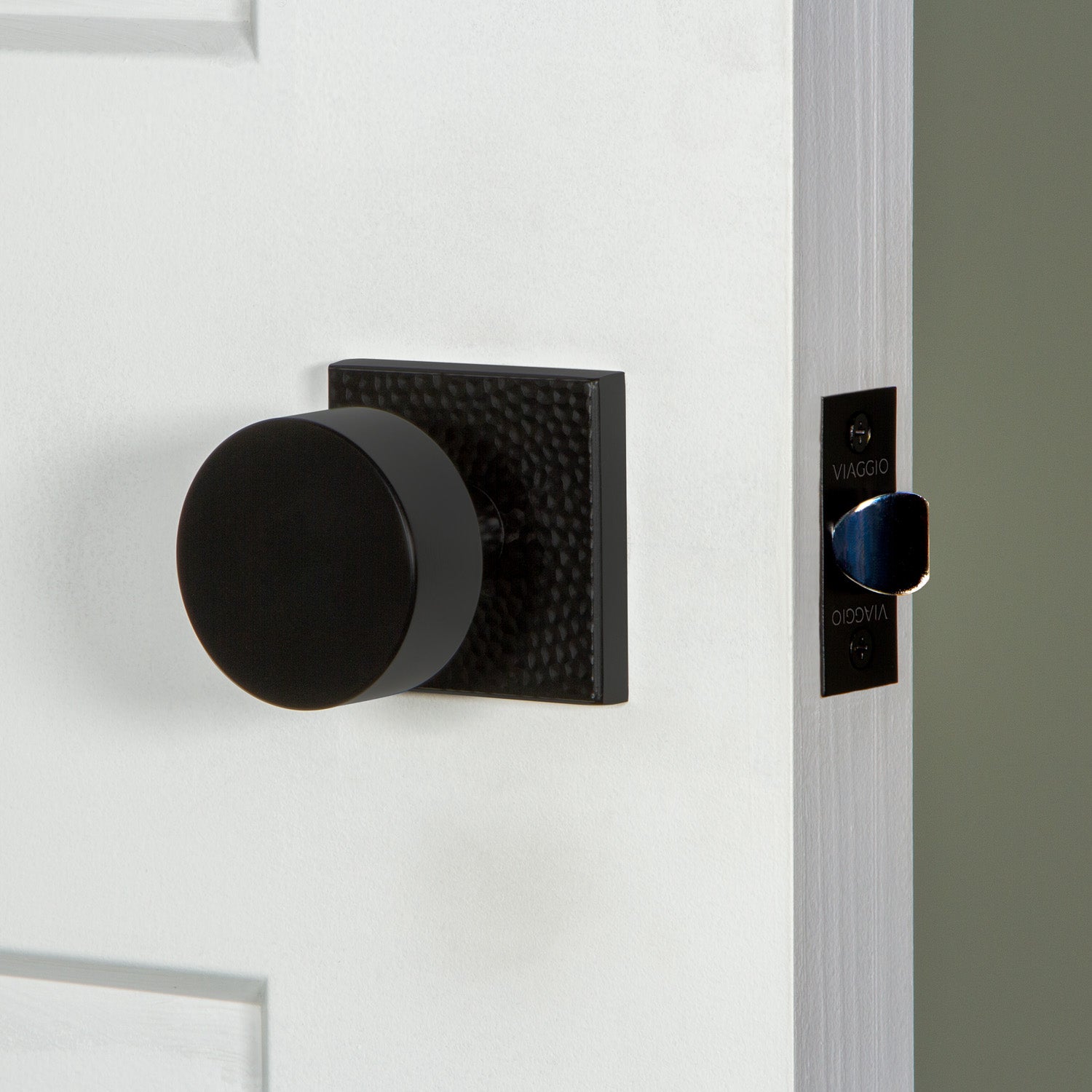 Quadrato Hammered Rosette with Circolo Knob in Satin Black