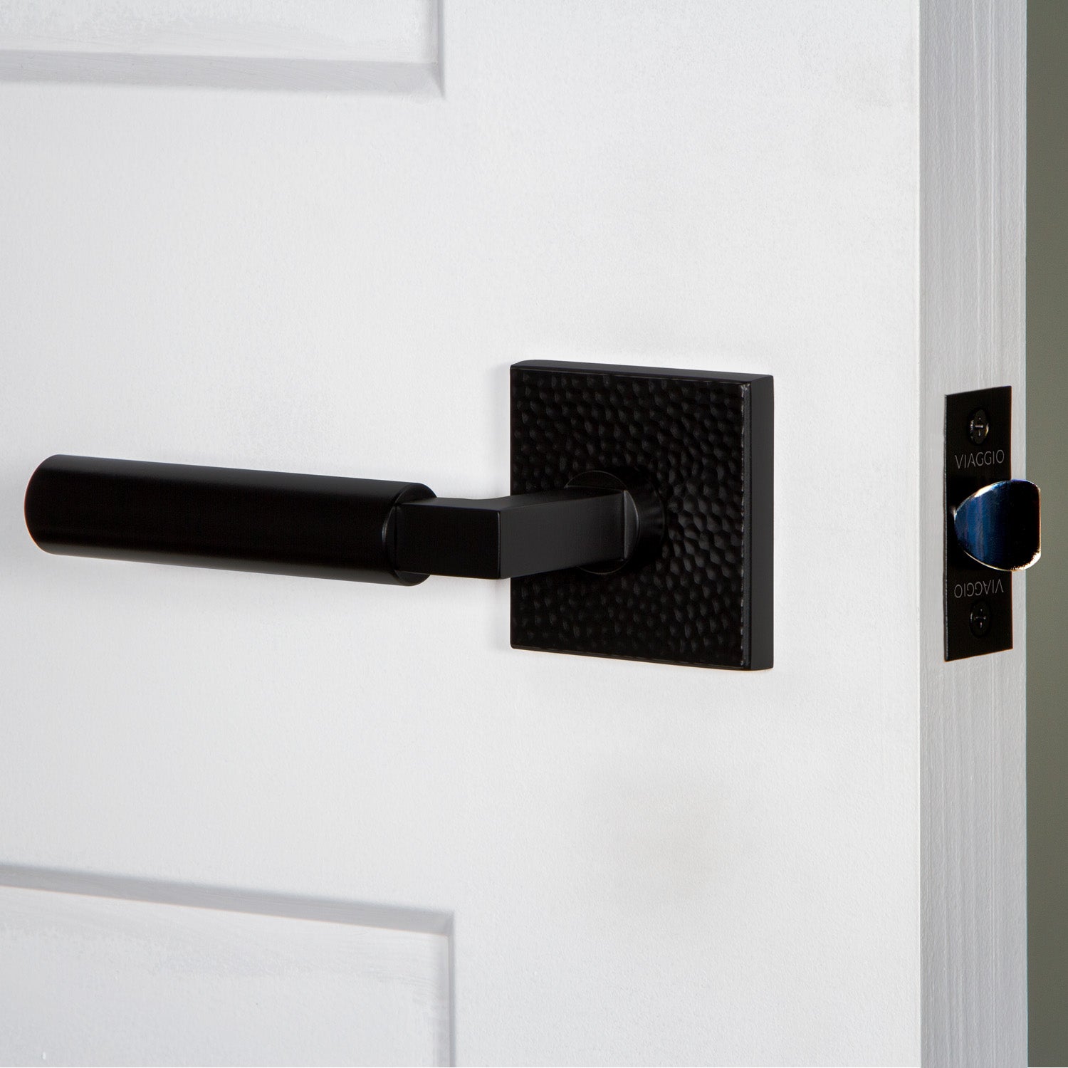 Quadrato Hammered Rosette with Moderno Lever in Satin Black