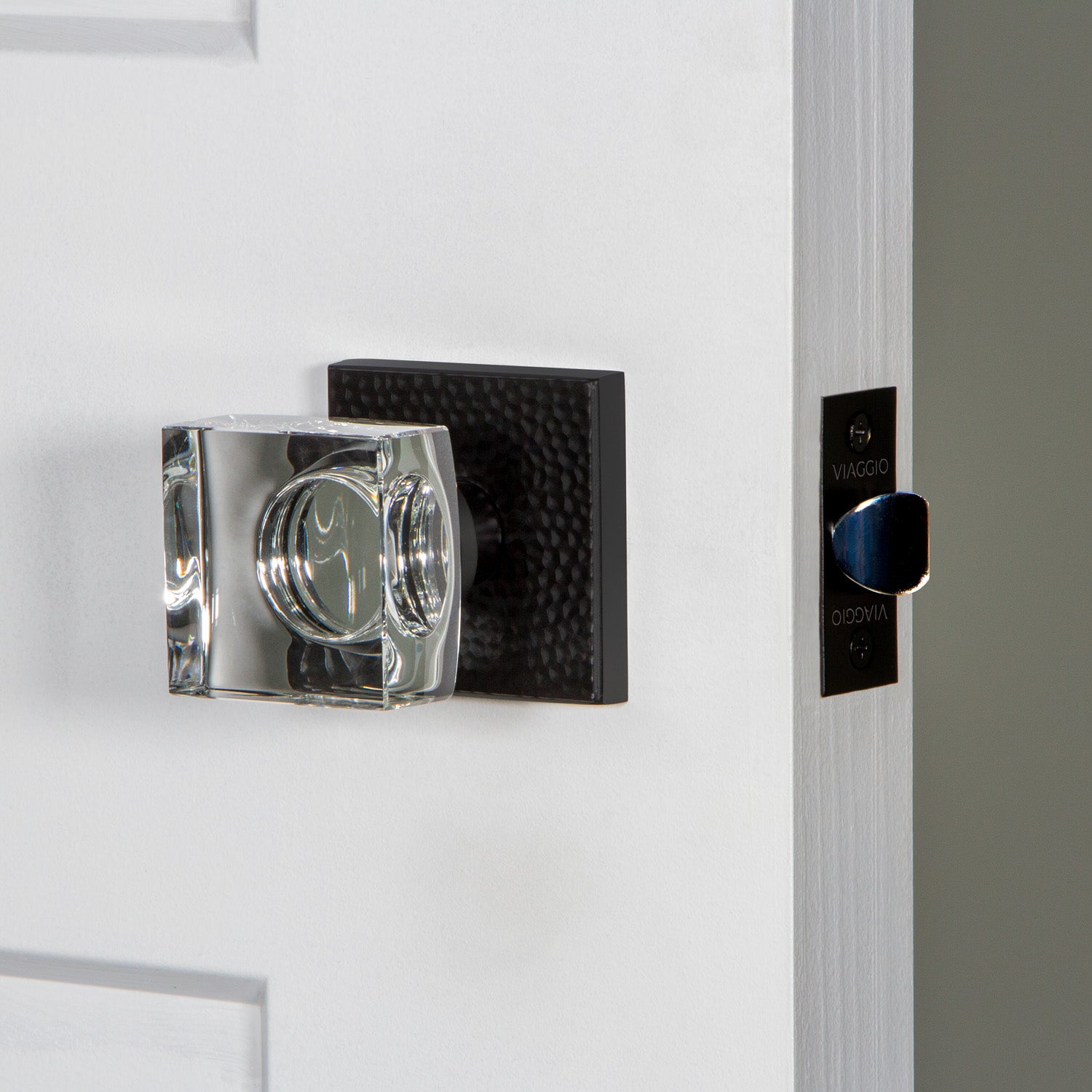 Quadrato Hammered Rosette with Quadrato Crystal Knob in Satin Black