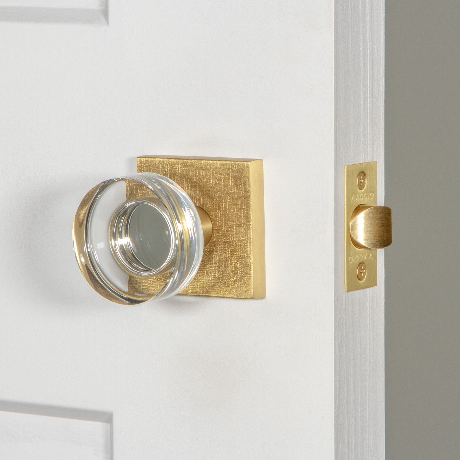 Quadrato Linen Rosette with Circolo Crystal Knob in Satin Brass