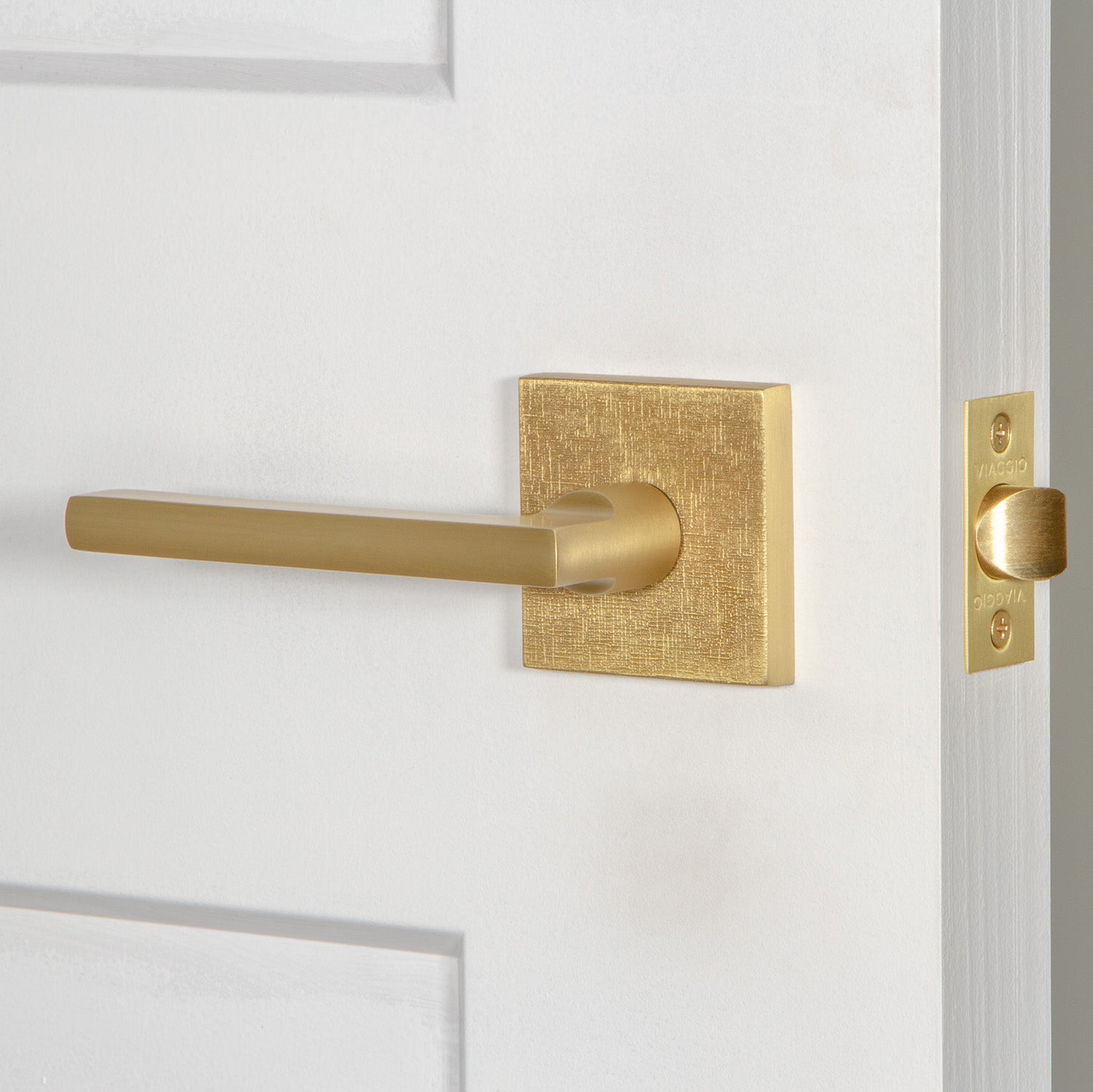 Quadrato Linen Rosette with Milano Lever in Satin Brass