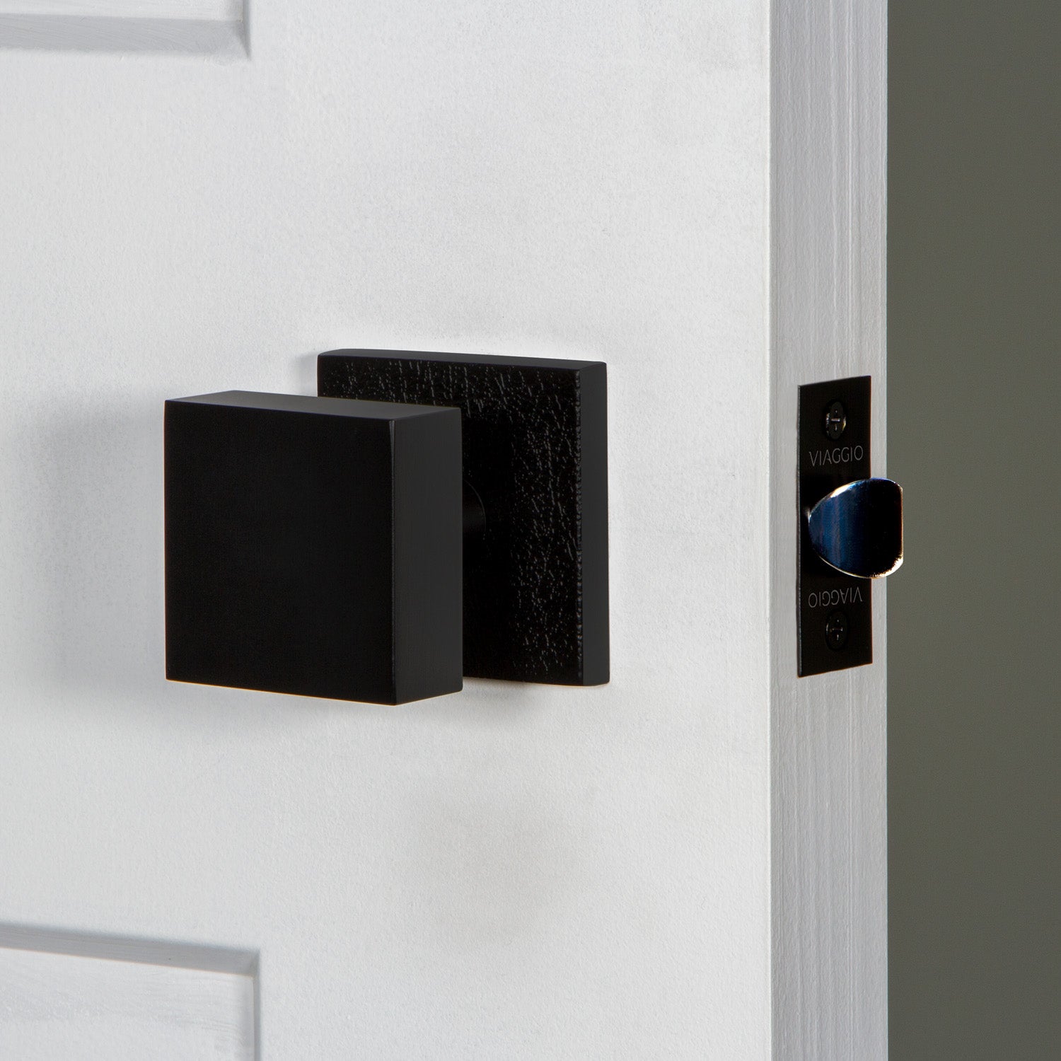 Quadrato Linen Rosette with Quadrato Knob in Satin Black