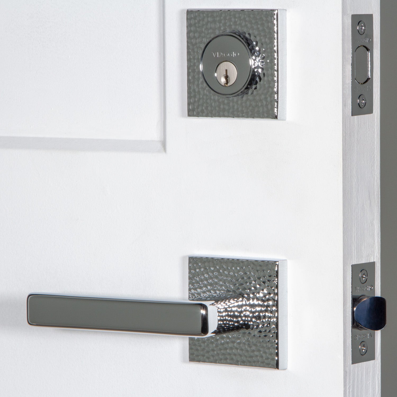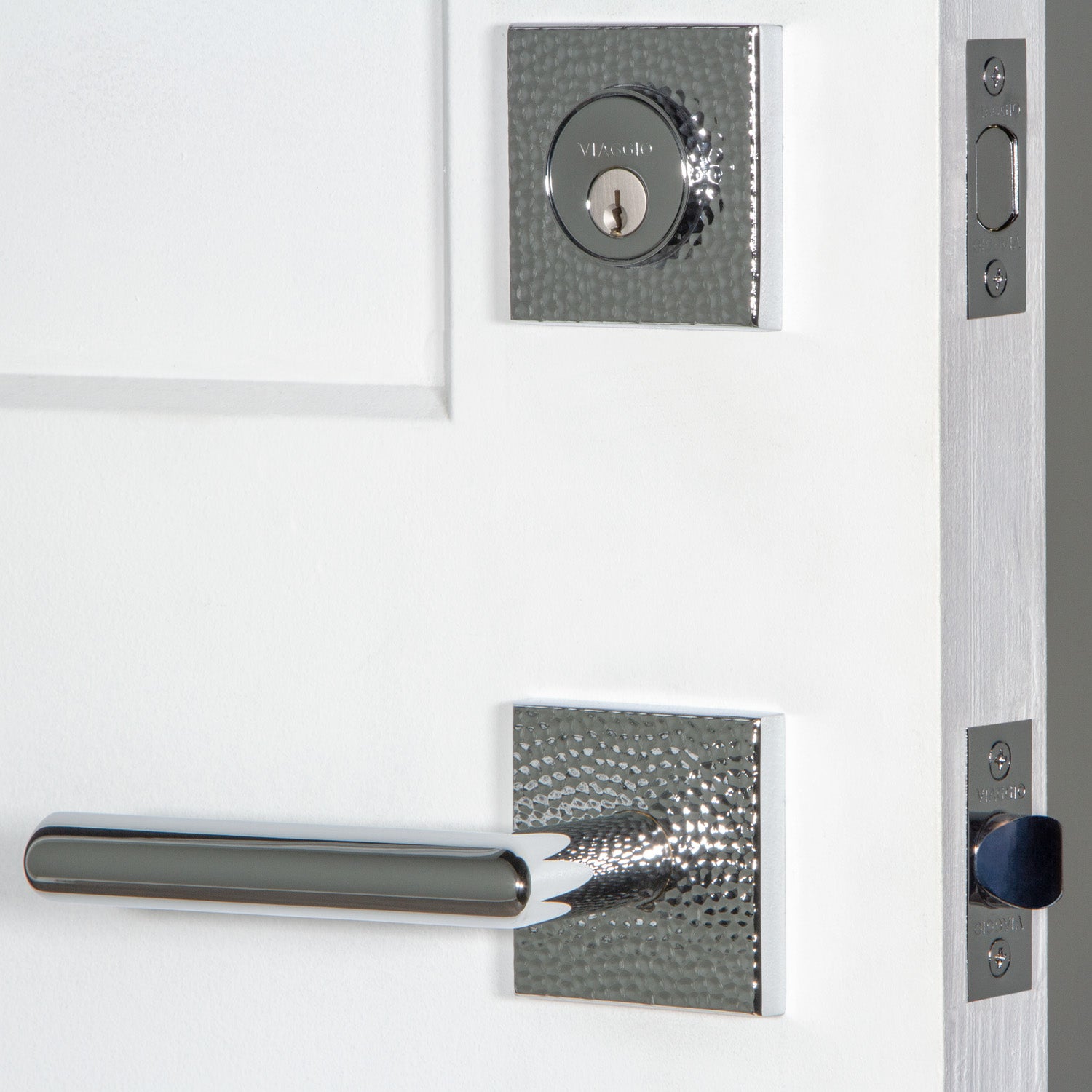 Quadrato Hammered Rosette Entry Set with Lusso Lever in Bright Chrome