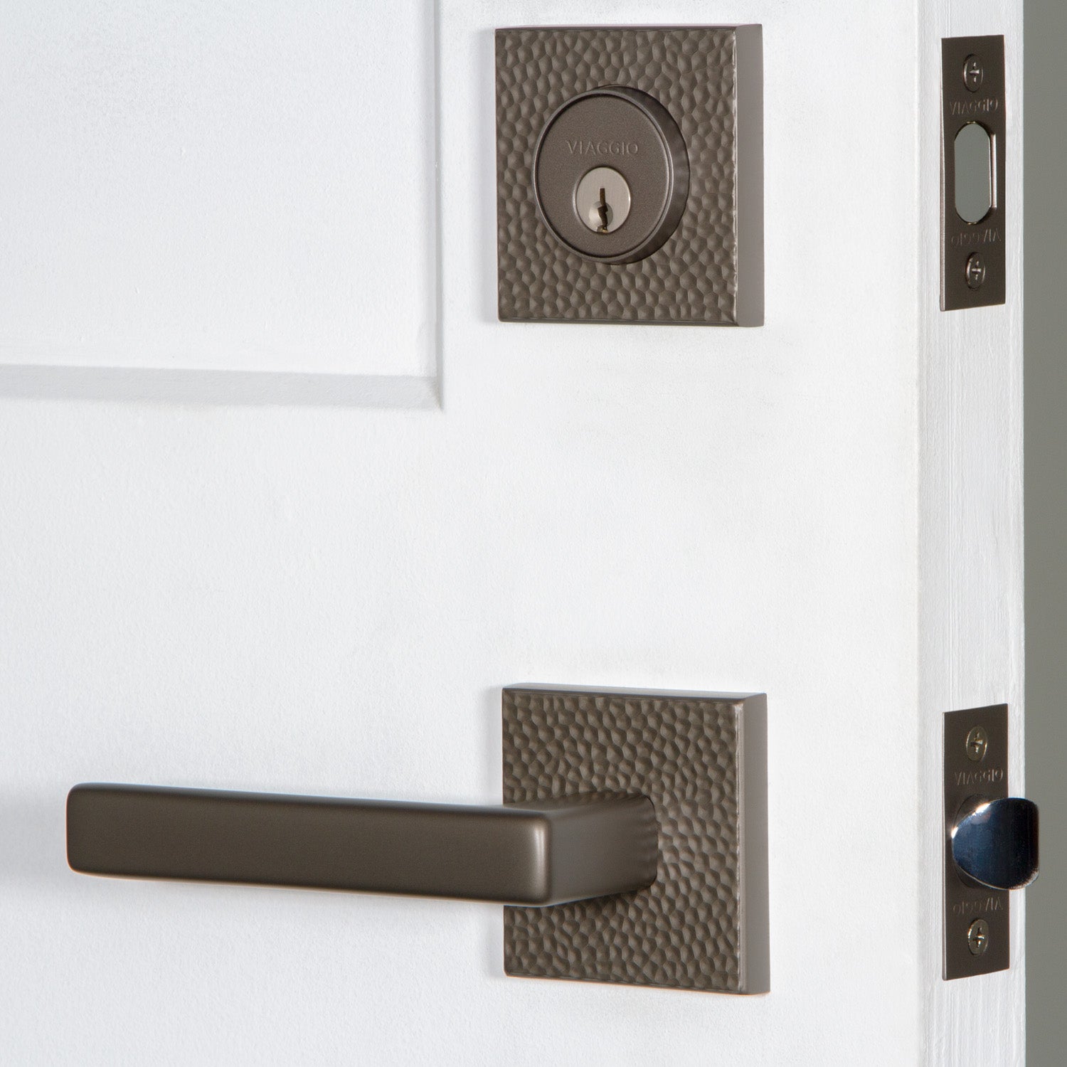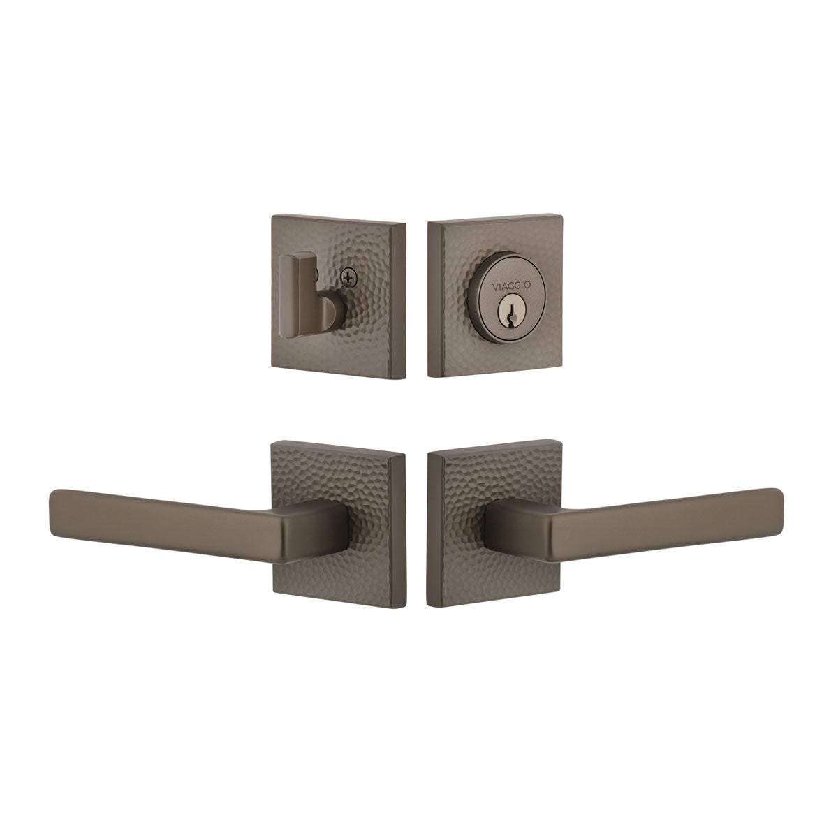 Quadrato Hammered Rosette Entry Set with Lusso Lever in Titanium Gray