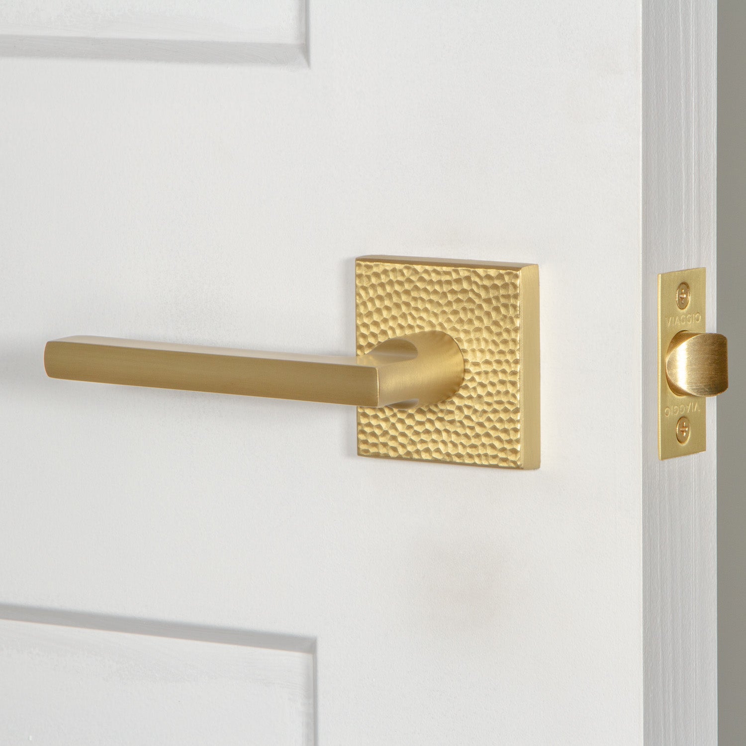 Quadrato Hammered Rosette with Milano Lever in Satin Brass