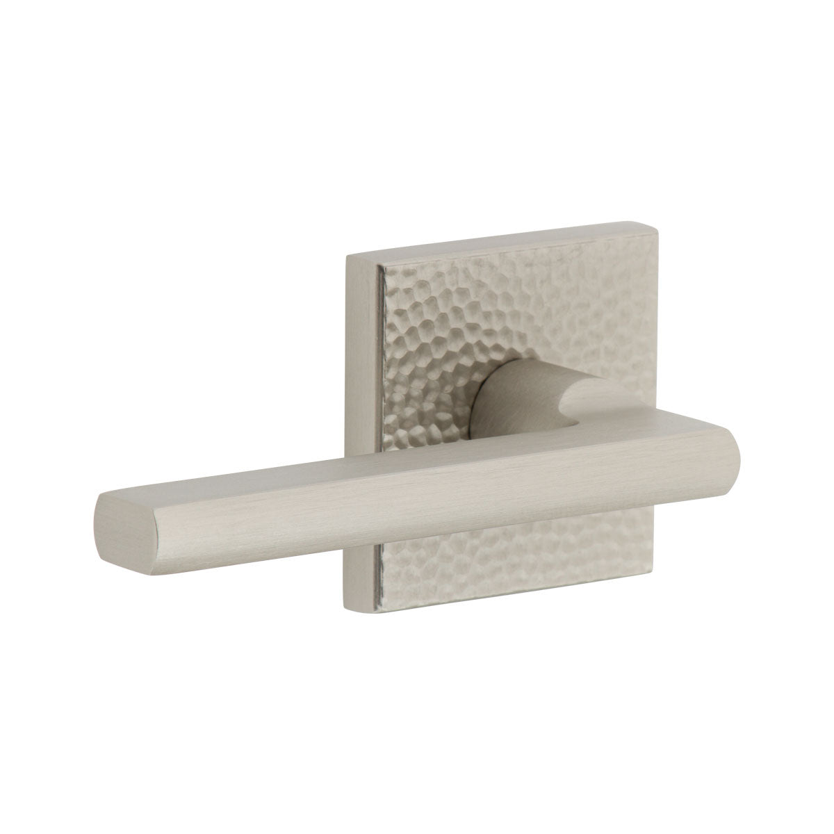 Quadrato Hammered Rosette with Milano Lever in Satin Nickel