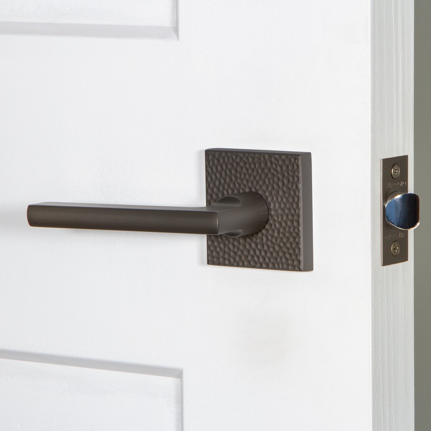 Quadrato Hammered Rosette with Milano Lever in Satin Black