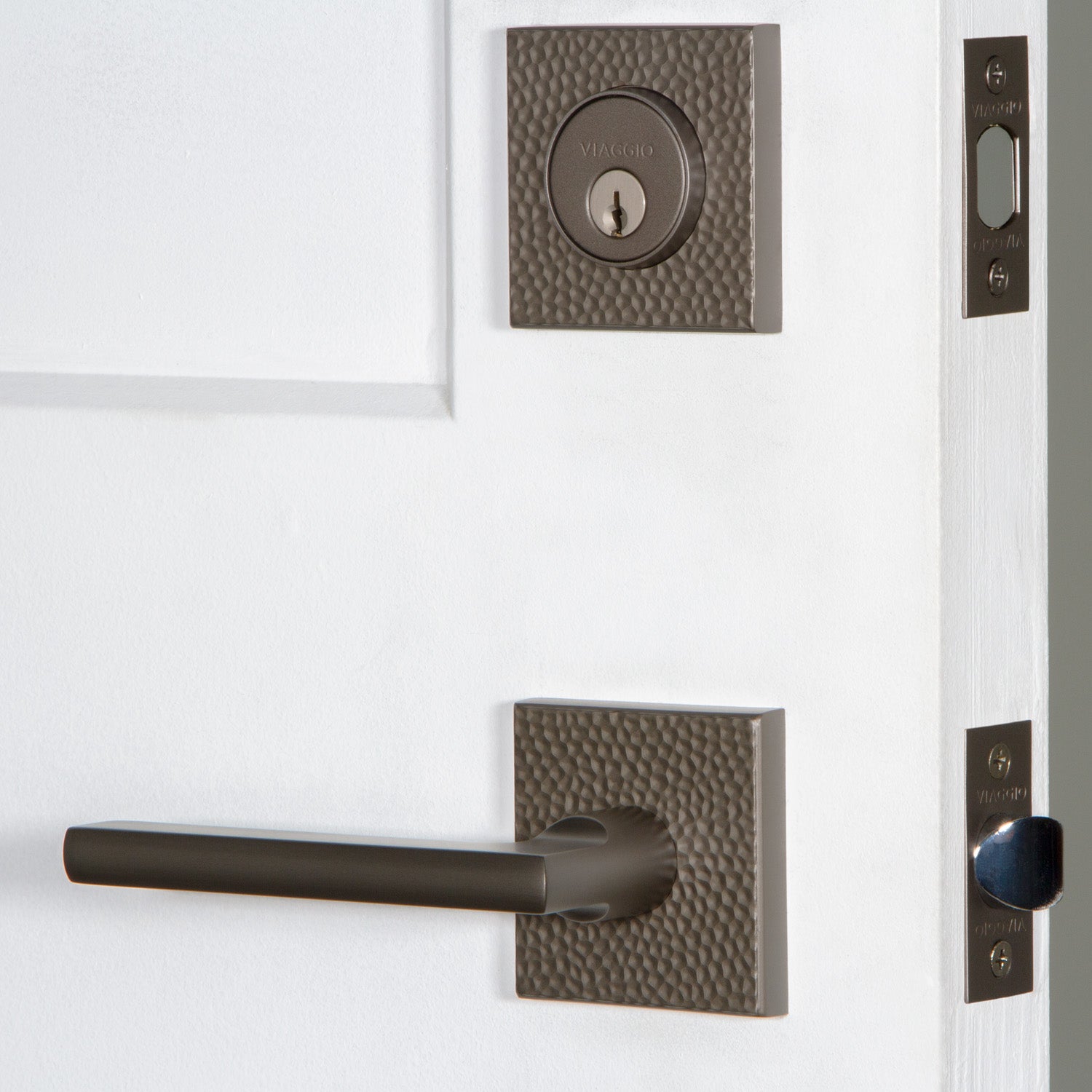 Quadrato Hammered Rosette Entry Set with Milano Lever in Titanium Gray