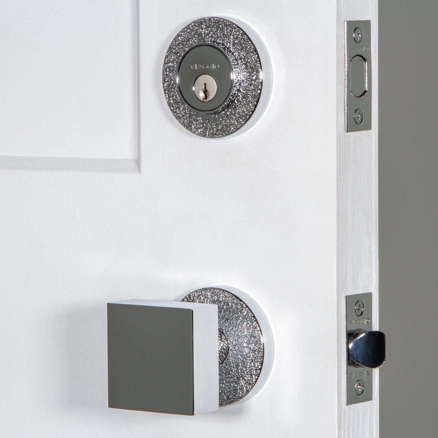 Circolo Leather Rosette Entry Set with Quadrato Knob in Bright Chrome