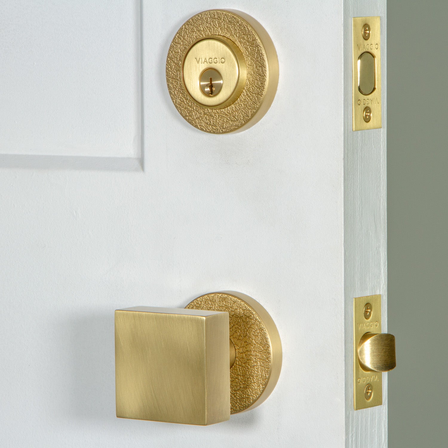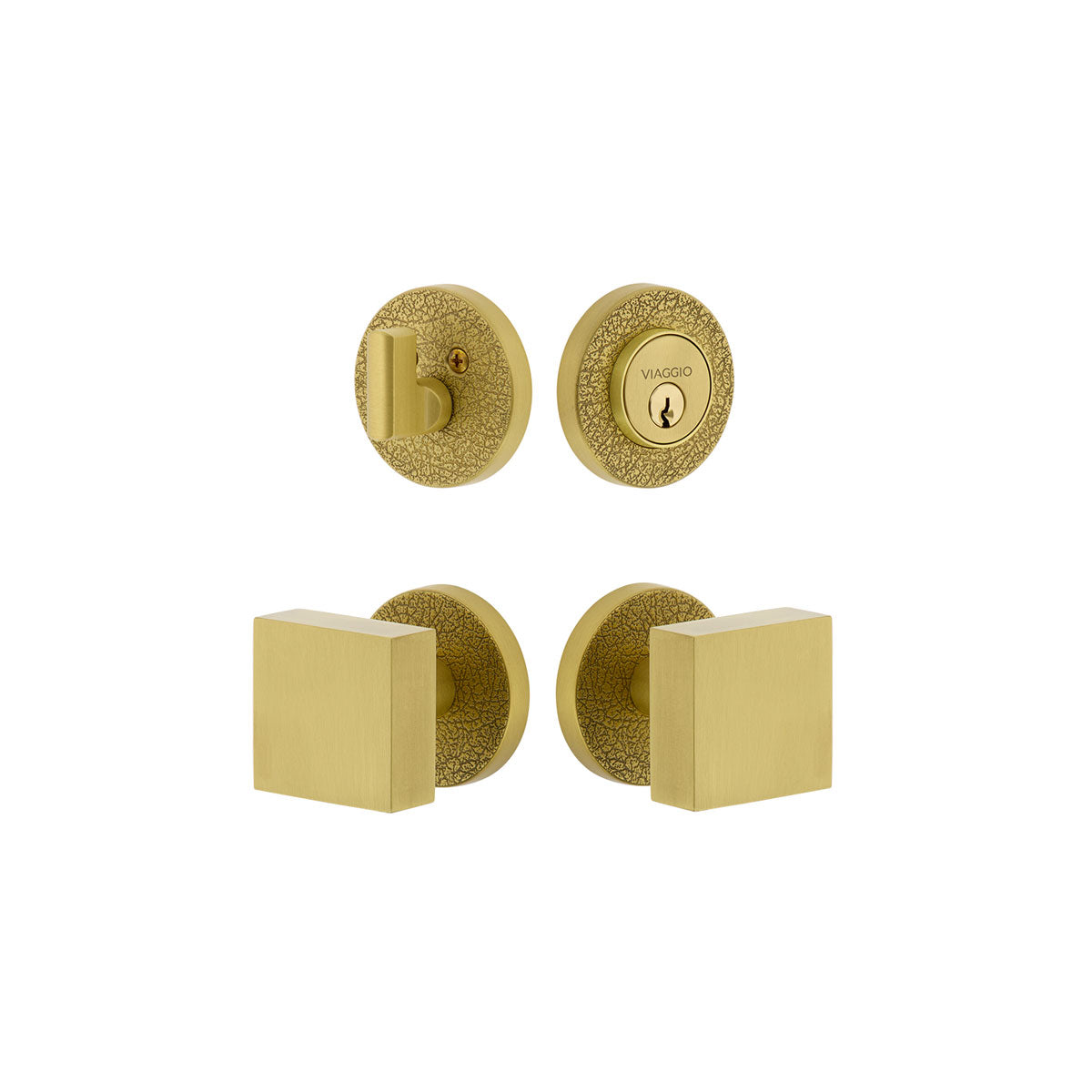 Circolo Leather Rosette Entry Set with Quadrato Knob in Satin Brass