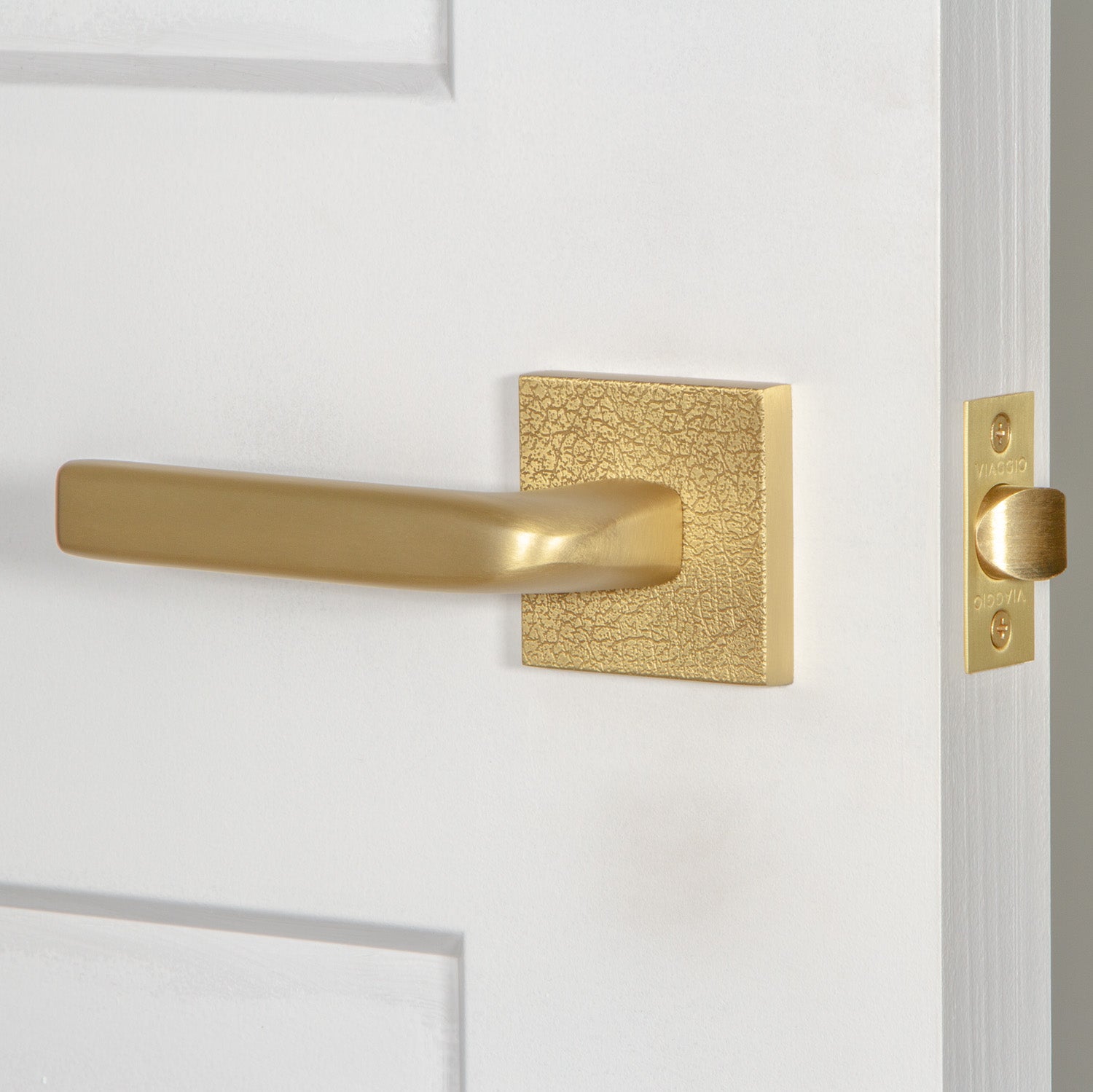 Quadrato Leather Rosette with Bella Lever in Satin Brass