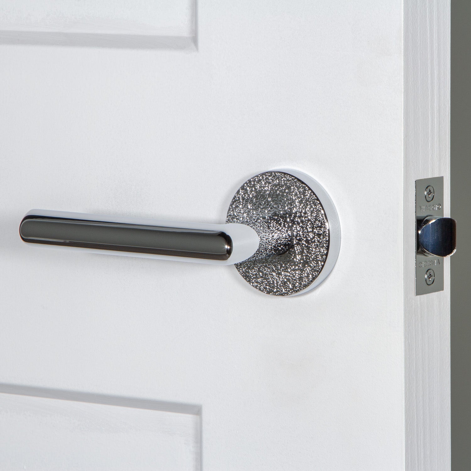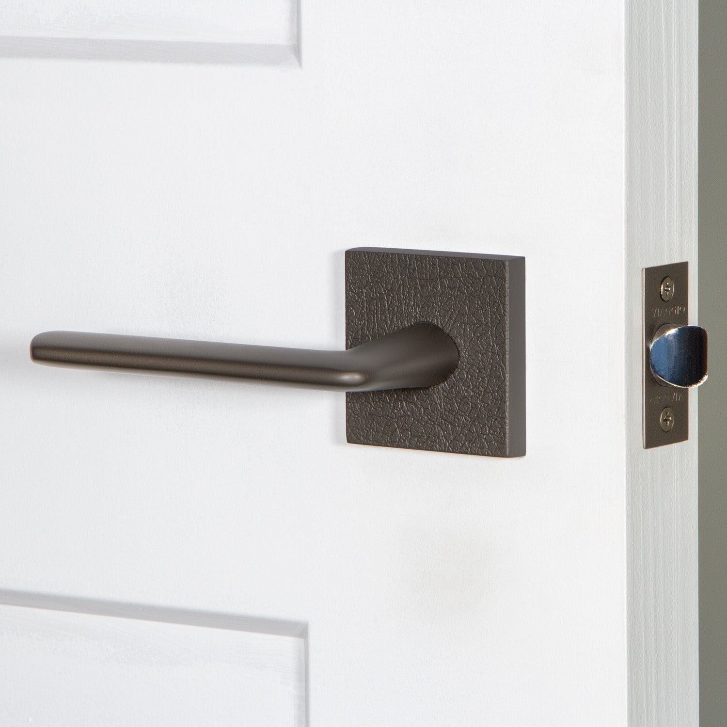 Our Motivo Collection includes rosettes and levers with natural and industrial textures including leather, linen, hammered, and rebar. When paired with a smooth knob or lever, textured rosettes create an imaginative juxtaposition to delight the eye.