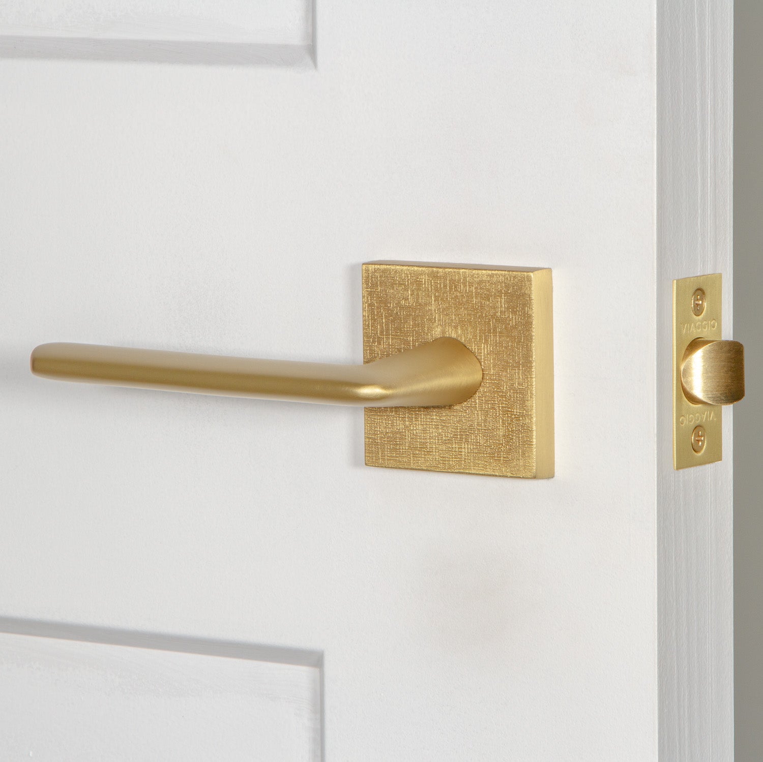 Quadrato Linen Rosette with Brezza Lever in Satin Brass