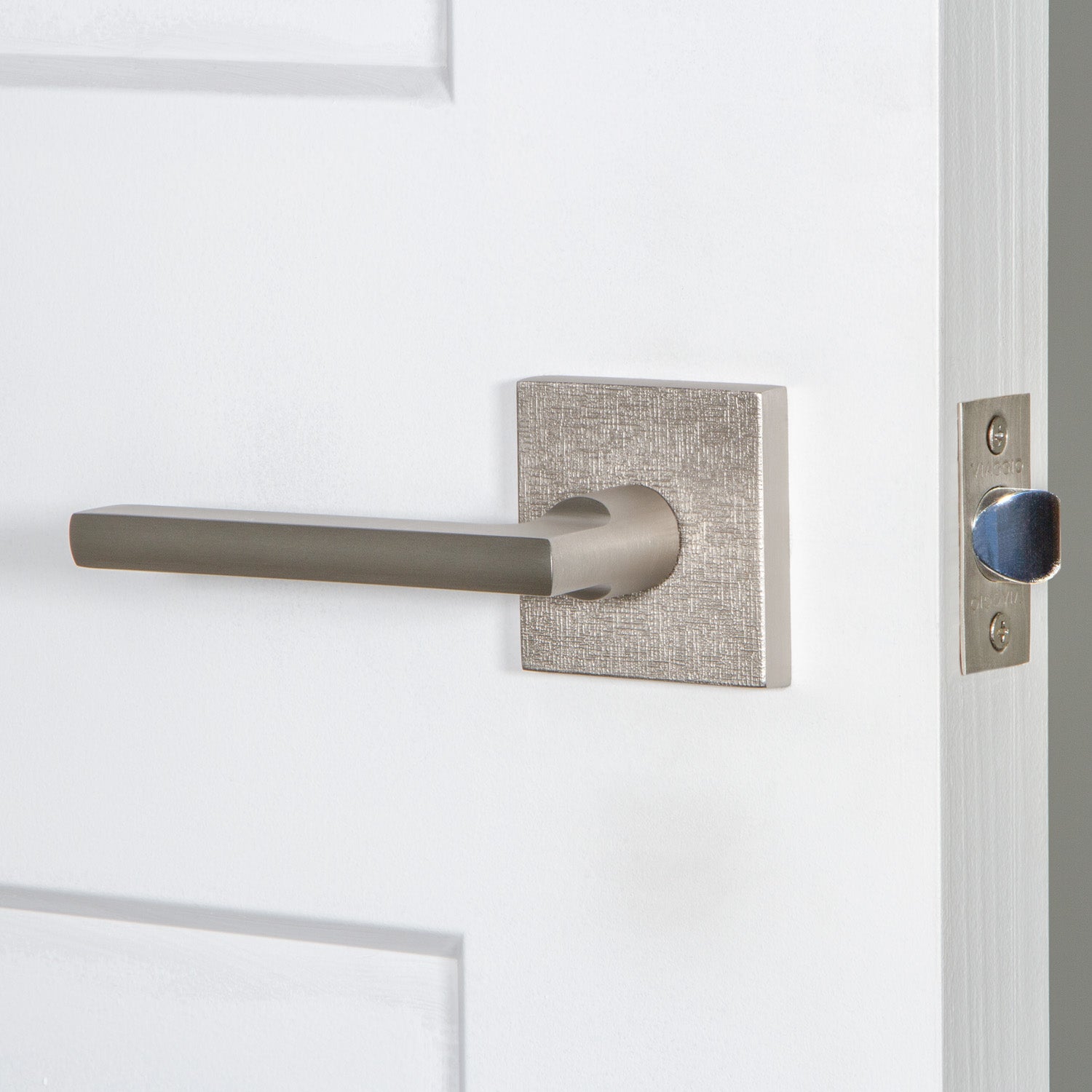 Quadrato Linen Rosette Entry Set with Lusso Lever in Satin Nickel