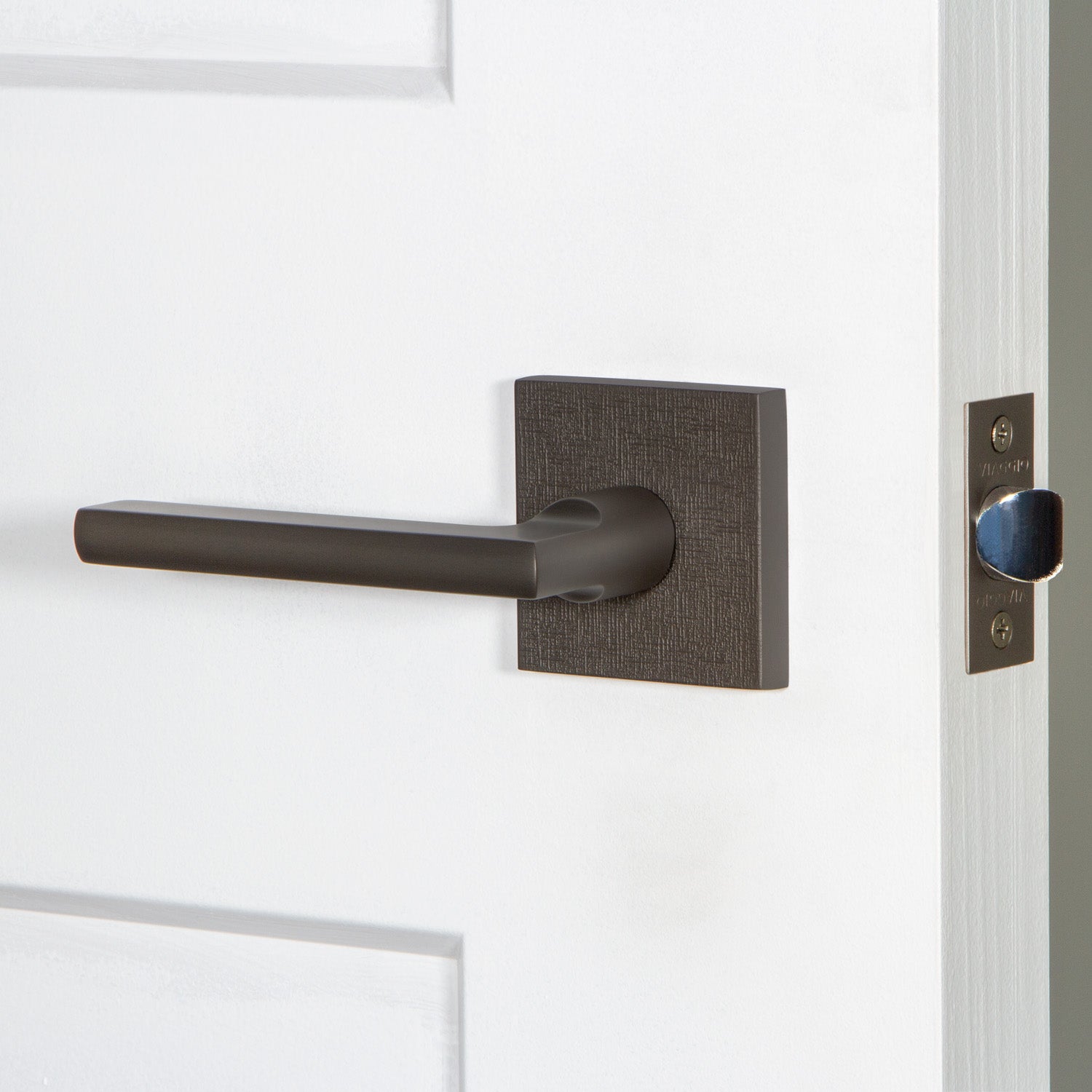 Quadrato Linen Rosette Entry Set with Moderno Lever in Satin Black
