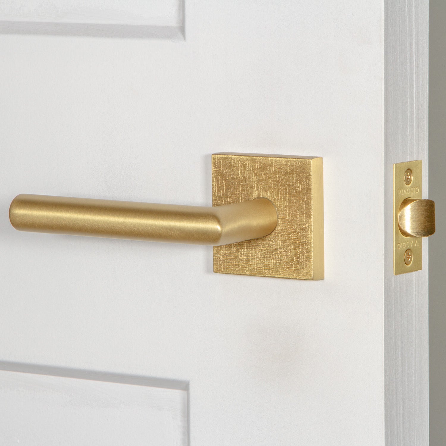 Quadrato Linen Rosette with Moderno Lever in Satin Brass