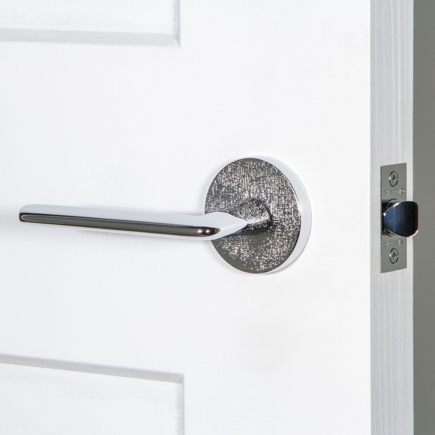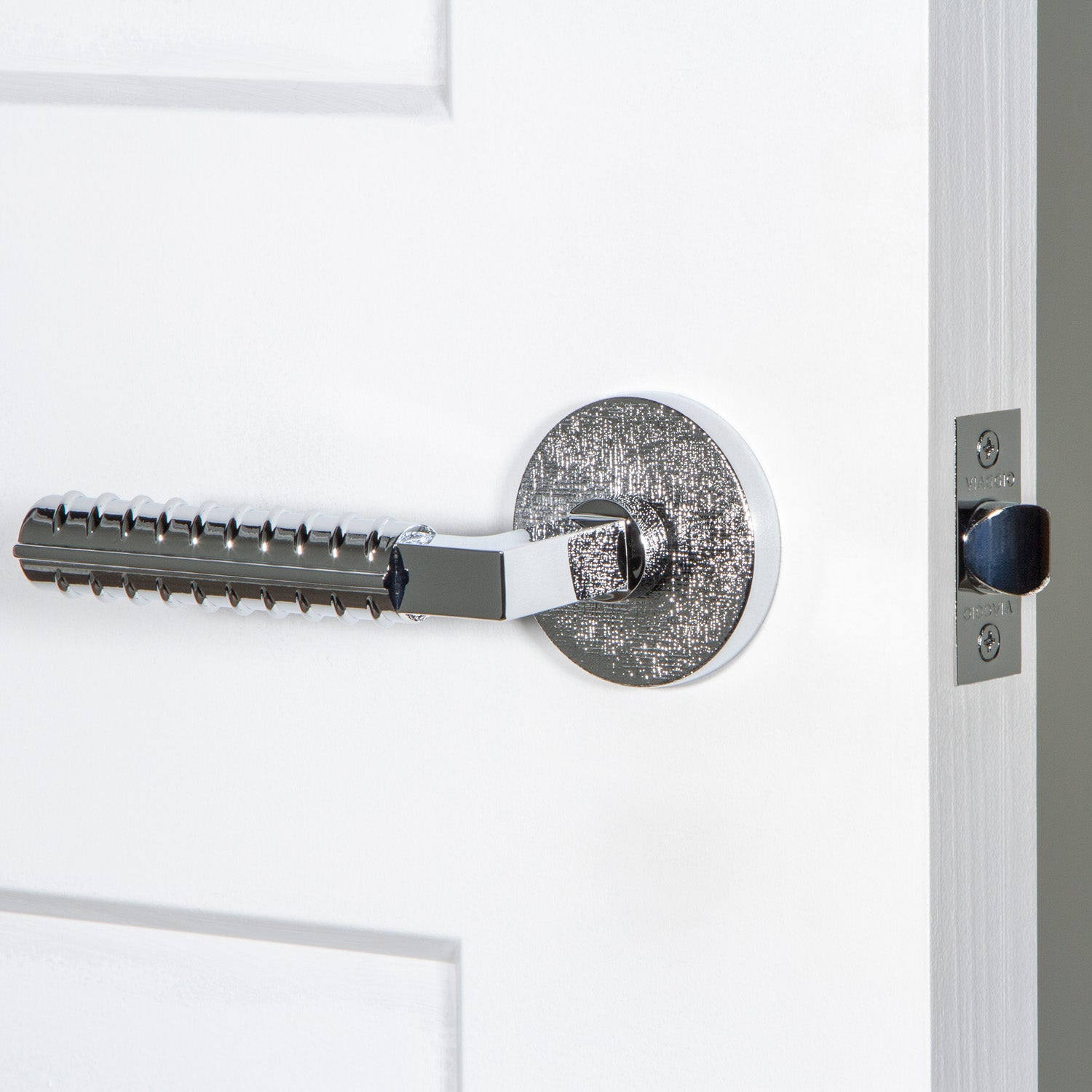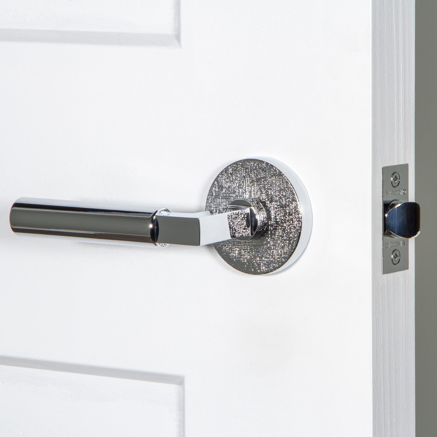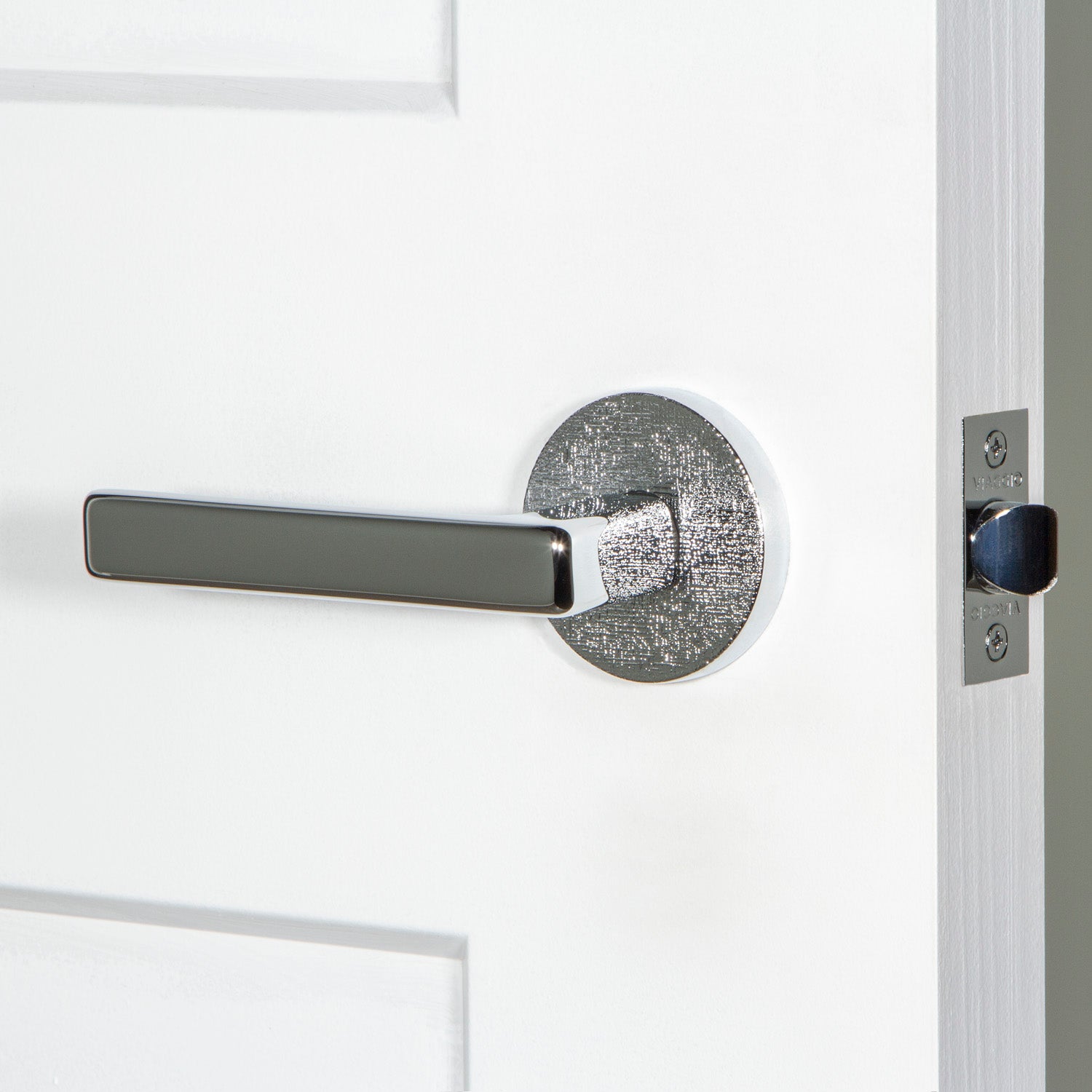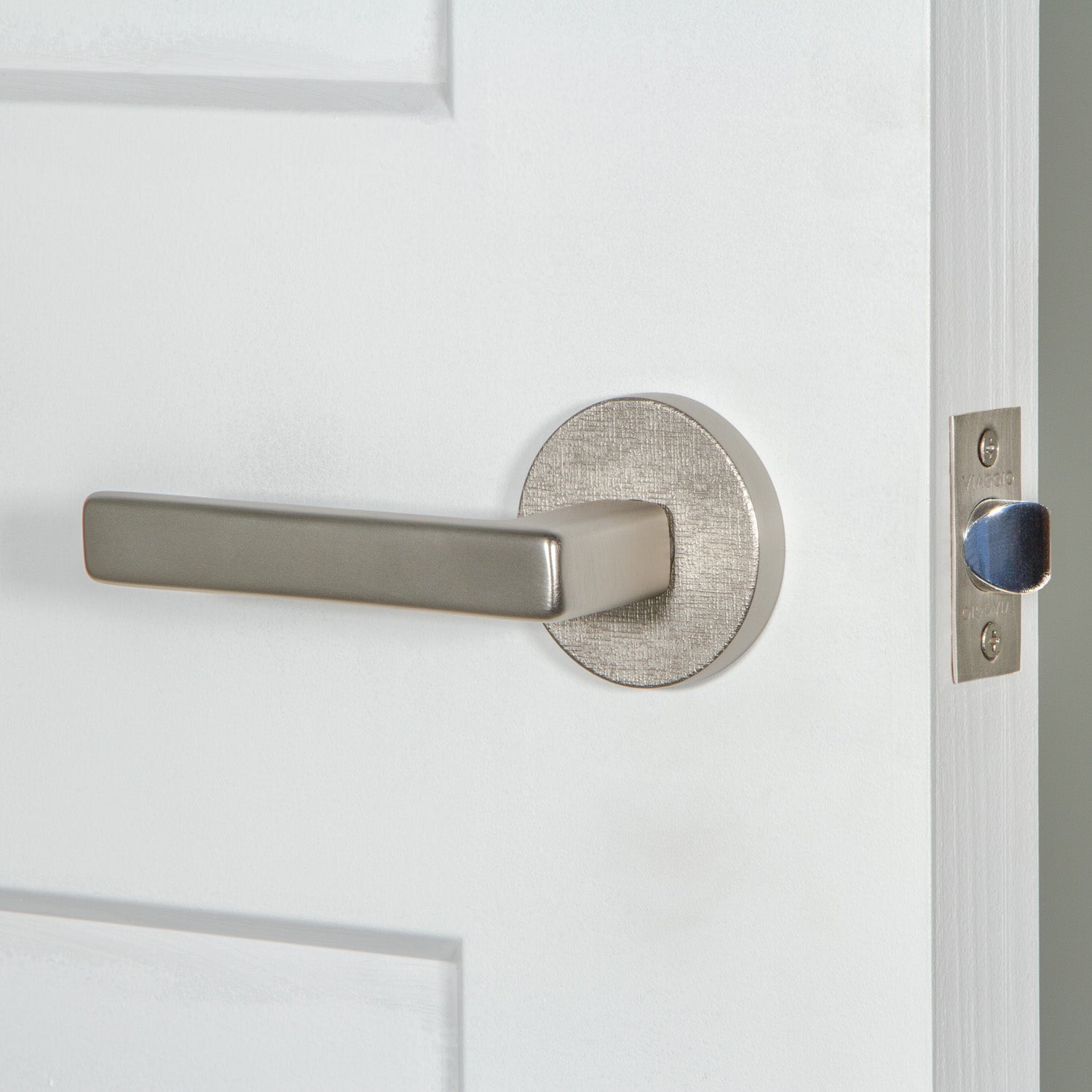 Our Motivo Collection includes rosettes and levers with natural and industrial textures including leather, linen, hammered, and rebar. When paired with a smooth knob or lever, textured rosettes create an imaginative juxtaposition to delight the eye.