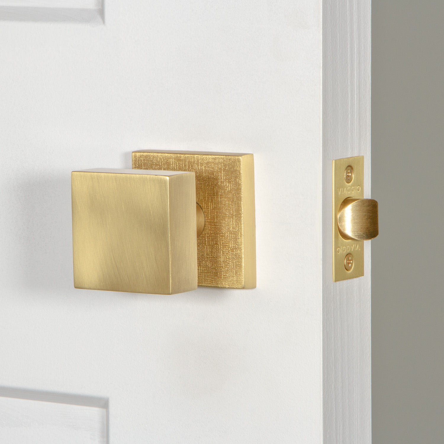Quadrato Linen Rosette with Quadrato Knob in Satin Brass