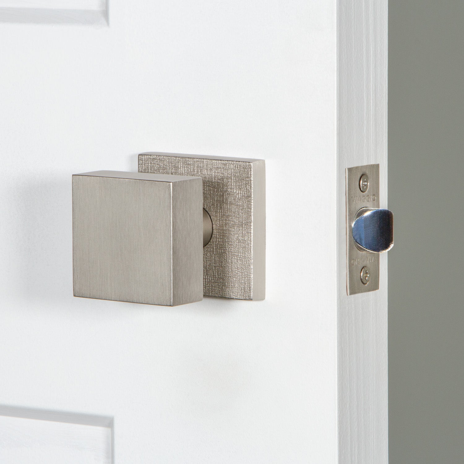Quadrato Linen Rosette with Quadrato Knob in Satin Nickel