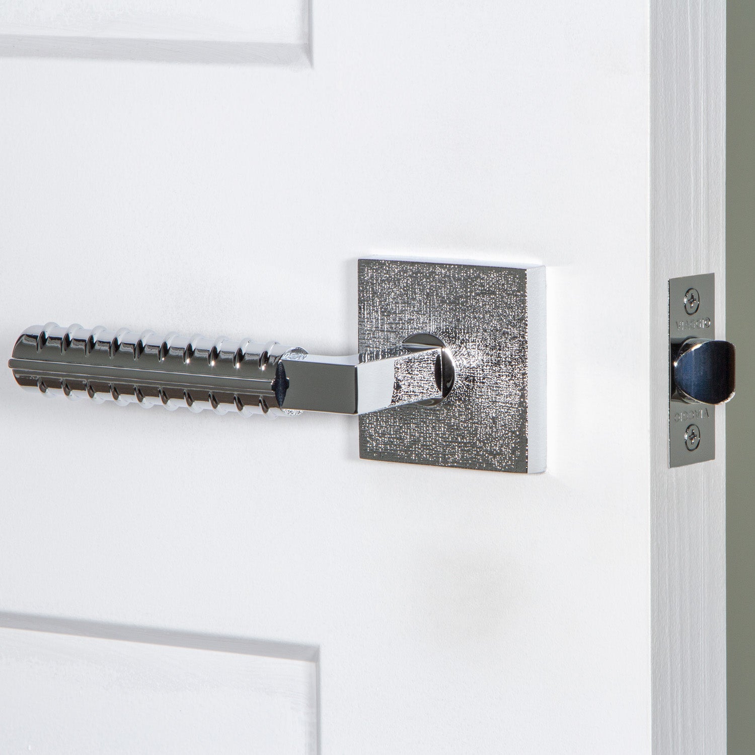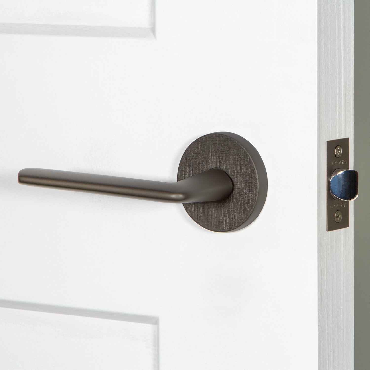 Our Motivo Collection includes rosettes and levers with natural and industrial textures including leather, linen, hammered, and rebar. When paired with a smooth knob or lever, textured rosettes create an imaginative juxtaposition to delight the eye.