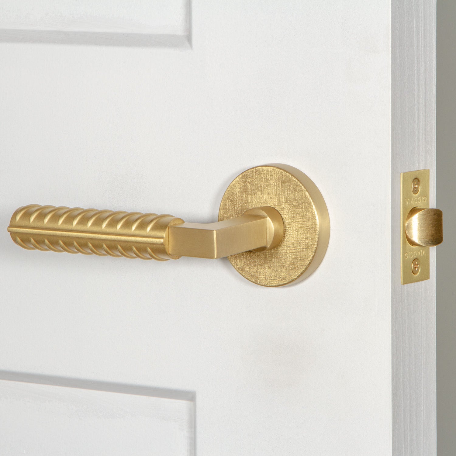 Circolo Linen Rosette with Brezza Lever in Satin Brass