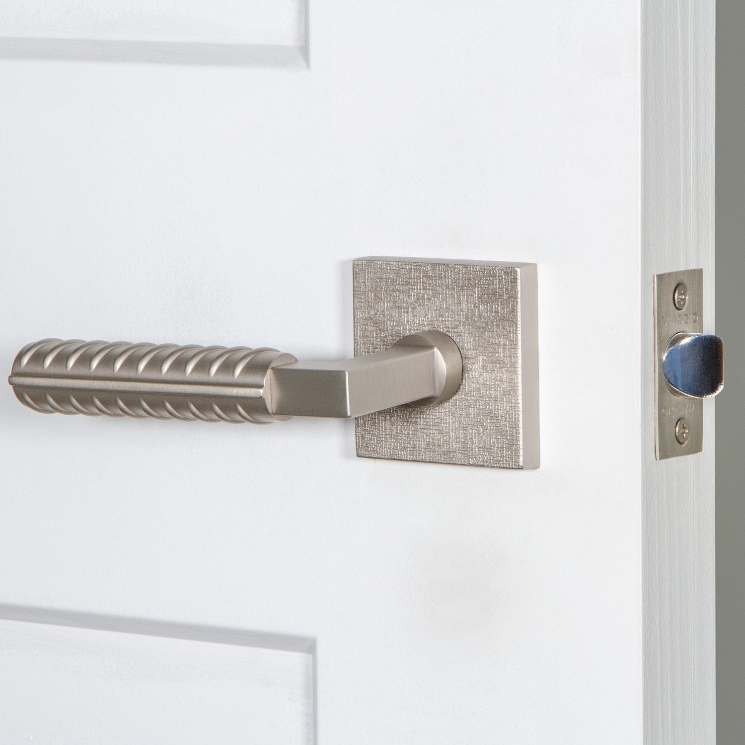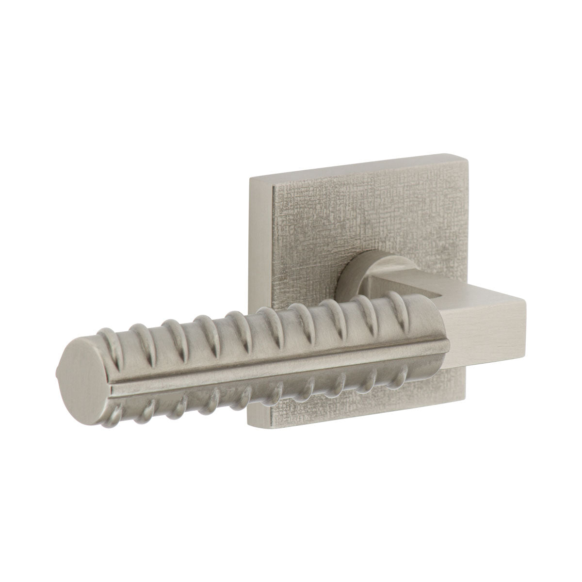 Quadrato Linen Rosette with Contempo Rebar Lever in Satin Nickel