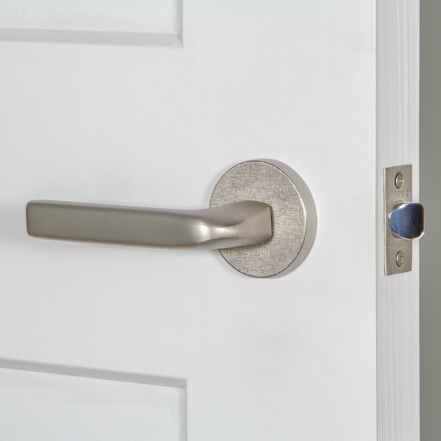 Circolo Linen Rosette Entry Set with Bella Lever in Satin Nickel