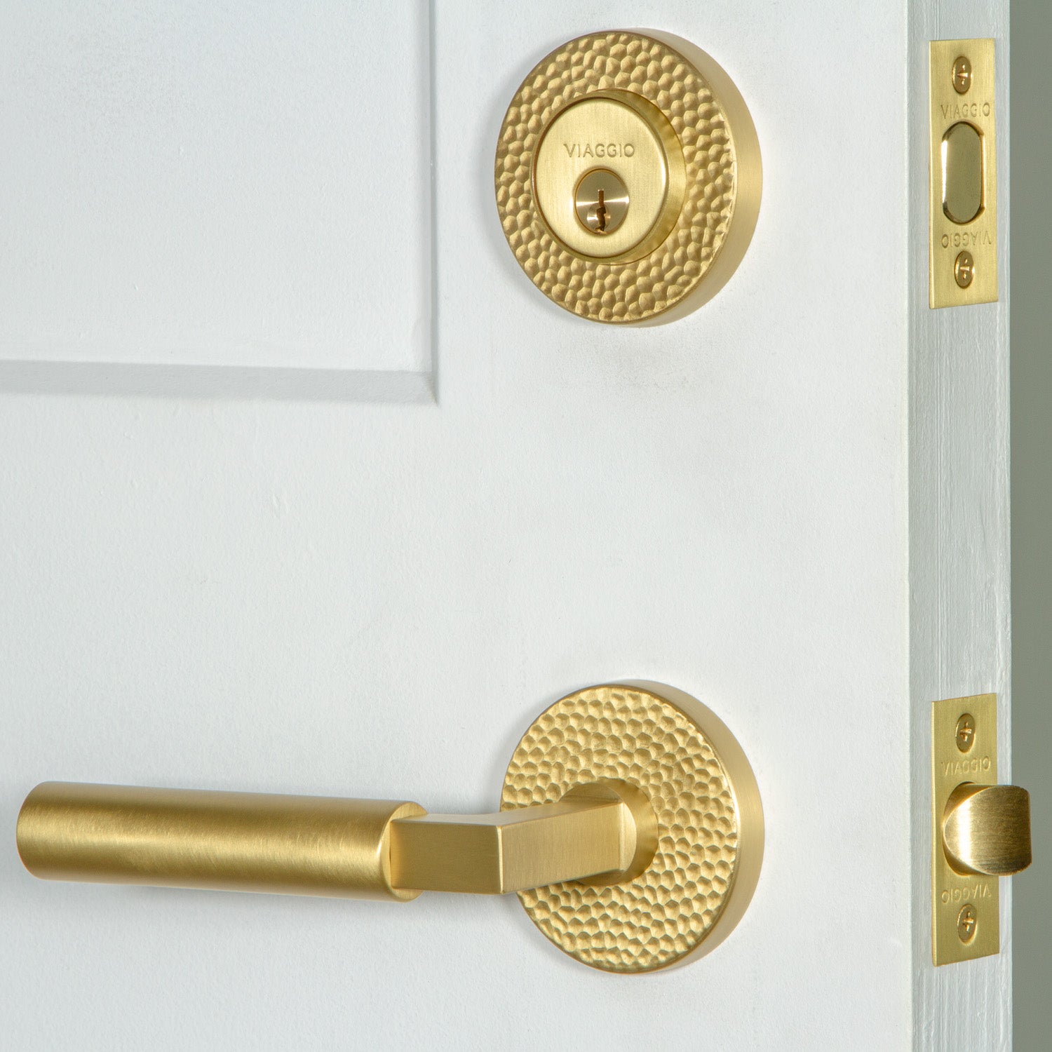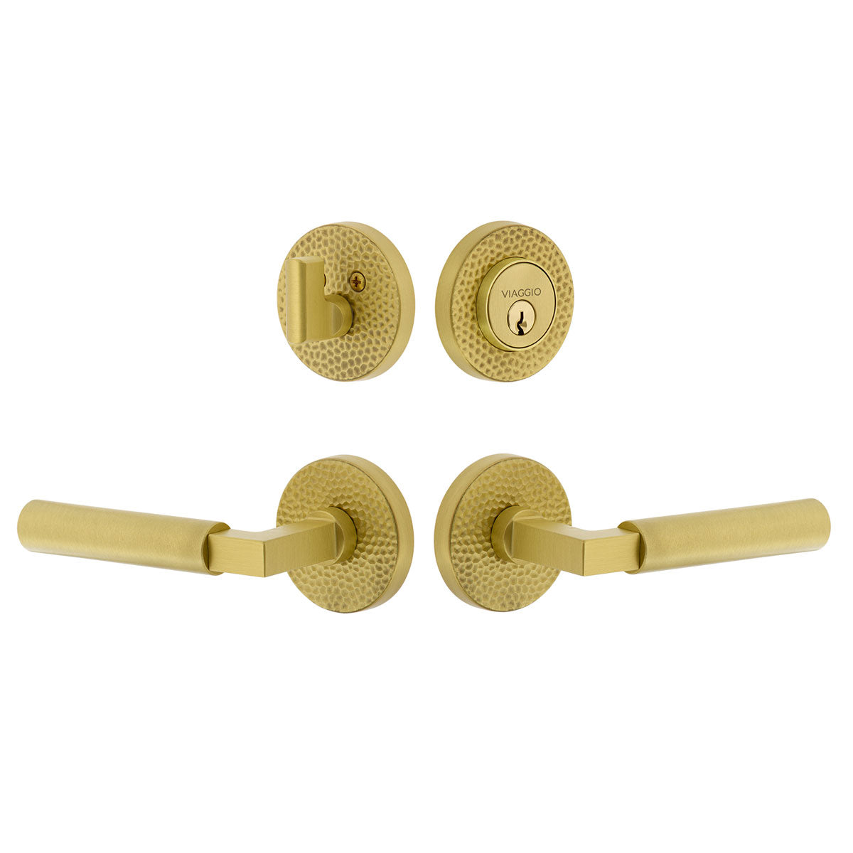 Circolo Hammered Rosette Entry Set with Contempo Lever in Satin Brass